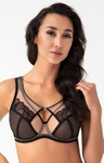Półusztywniany czarny biustonosz Gorsenia K647 ALICANTE z odciążającymi ramiączkami.