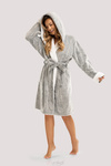 Ciepły szary szlafrok frotte z kapturem Unikat Sharon