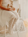 Czarne pończochy do paska ze srebrno złotym wykończeniem na udzie Fiore LUXE 15 DEN