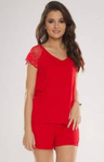 Wiskozowa piżamka letnia zdobiona koronką De Lafense 641 Noela