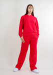 Komplet sportowy bluza z kapturem i "kangurką" oraz szerokie spodnie Dk-k-b8 - czerwony bawełna - Dkaren