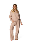 Komplet sportowy bluza z kapturem i "kangurką" oraz szerokie spodnie Dk-k-b8 - beż bawełna - Dkaren