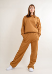Komplet sportowy bluza z kapturem i "kangurką" oraz szerokie spodnie Dk-k-b8 - brąz bawełna - Dkaren