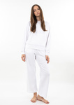 Komplet sportowy bluza z kapturem i "kangurką" oraz szerokie spodnie Dk-k-b8 - biały bawełna - Dkaren