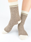 Słodkie skarpety damskie ZYGZAK, ala sweterek z prawdziwą wełną SB136 brąz- Noviti