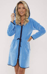 Krótki welurowy szlafrok na zamek i z kapturem De Lafense - 498 Macarena II BEŻOWY