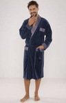 Bawełniany długi szlafrok męski Noble De Lafense z satynowym obłożeniem - 868 jeansowy