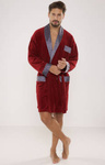 Welurowy długi szlafrok męski De Lafense z satynowym obłożeniem - 773 bordowy