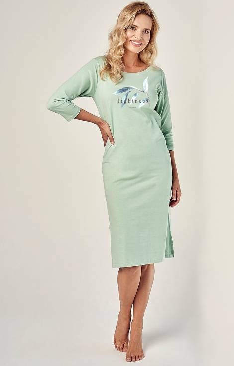 - Koszula damska z rękawem 3/4 ozdobiona nadrukiem na piersiach.