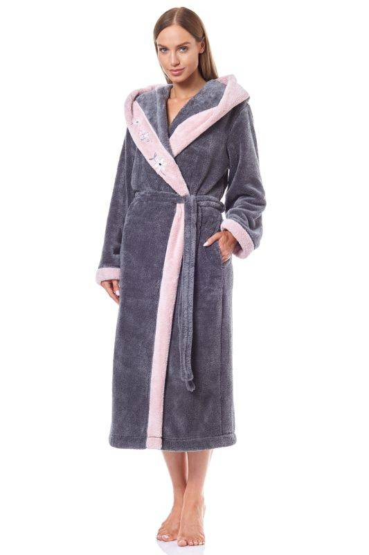 Długi ciemnoszary damski szlafrok L&L 9145 HFT onyx
