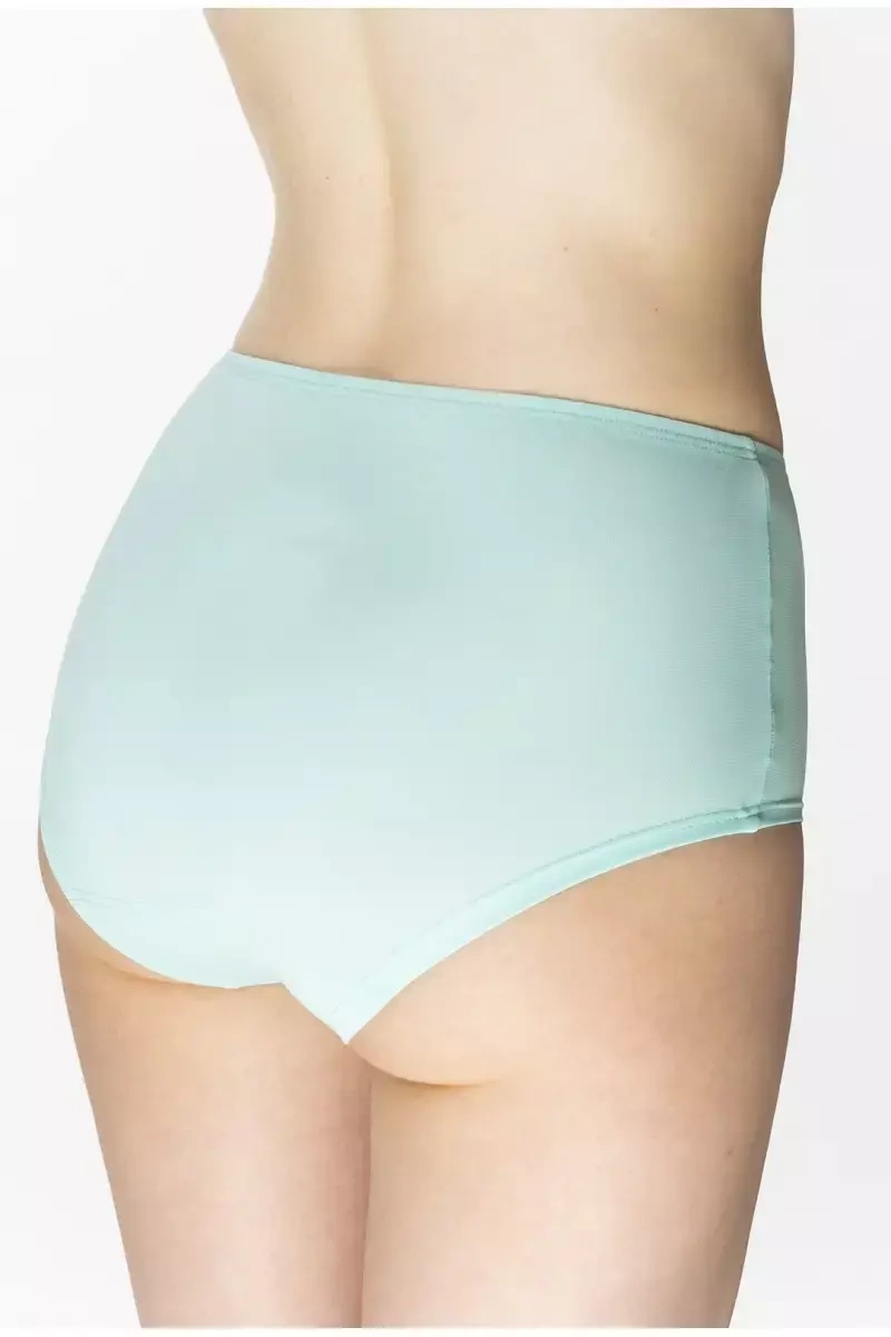 Klasyczne majtki damskie z wciąganą gumką Mewa 6340 Eliza w eleganckim kolorze miętowym to doskonały wybór dla kobiet, które cenią sobie komfort i estetykę. Stworzone przez renomowaną firmę Mewa, model 86340-ELIZA-MIĘTA oferuje idealne połączenie nowoczesnego designu i funkcjonalności. Wykonane z wysokiej jakości jedwabiu wiskozowego Vistex, te figi damskie gwarantują delikatność i przyjemność noszenia na co dzień. Ich gładka powierzchnia oraz starannie zaprojektowany krój midi sprawiają, że są one nie tylko estetyczne, ale również praktyczne.