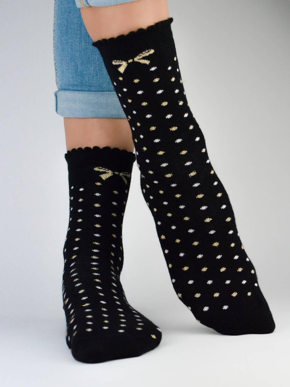 Skarpetki dziewczęce w kropki z lureksem Noviti SB059/02