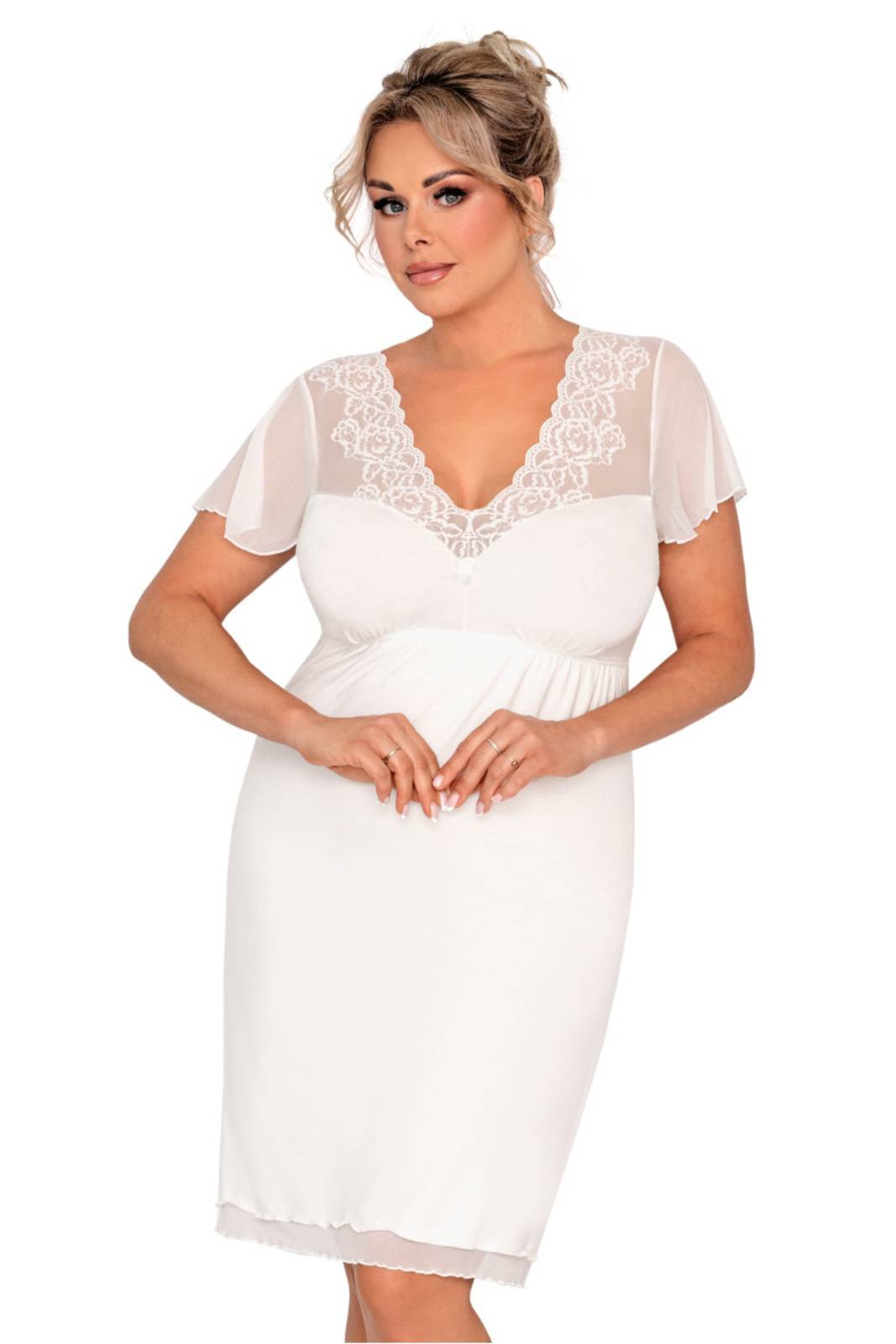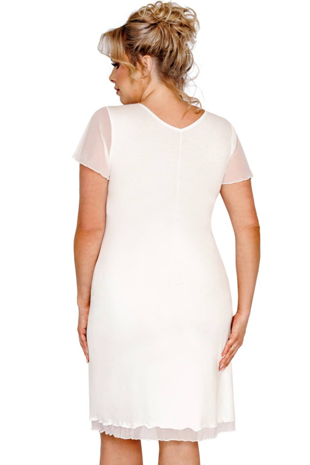 - Koszula nocna szyta z delikatnej wiskozy i ozdobnego tiulu.