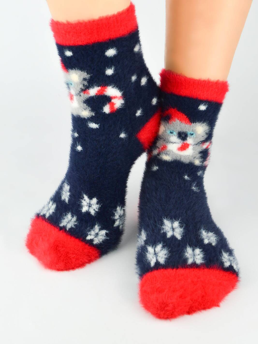 Skarpety puchate damskie XMAS koala granat - Noviti to idealny wybór na zimowe wieczory, które mogą stać się jeszcze bardziej przytulne i radosne. Wykonane z wysokiej jakości materiałów, te skarpety zapewnią Ci maksymalny komfort i ciepło, co sprawia, że są doskonałym dodatkiem do każdej stylizacji.