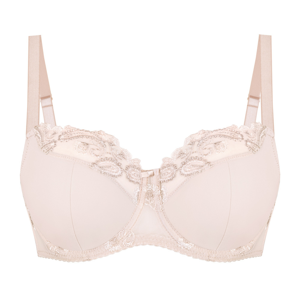 - Jasny, cielisty biustonosz idealny pod jasne ubrania.Wygodny biustonosz z póusztywnianymi miseczkami pięknie zbiera biust. Nieodpinane szersze ramiączka komfortowo podtrzymują piersi.