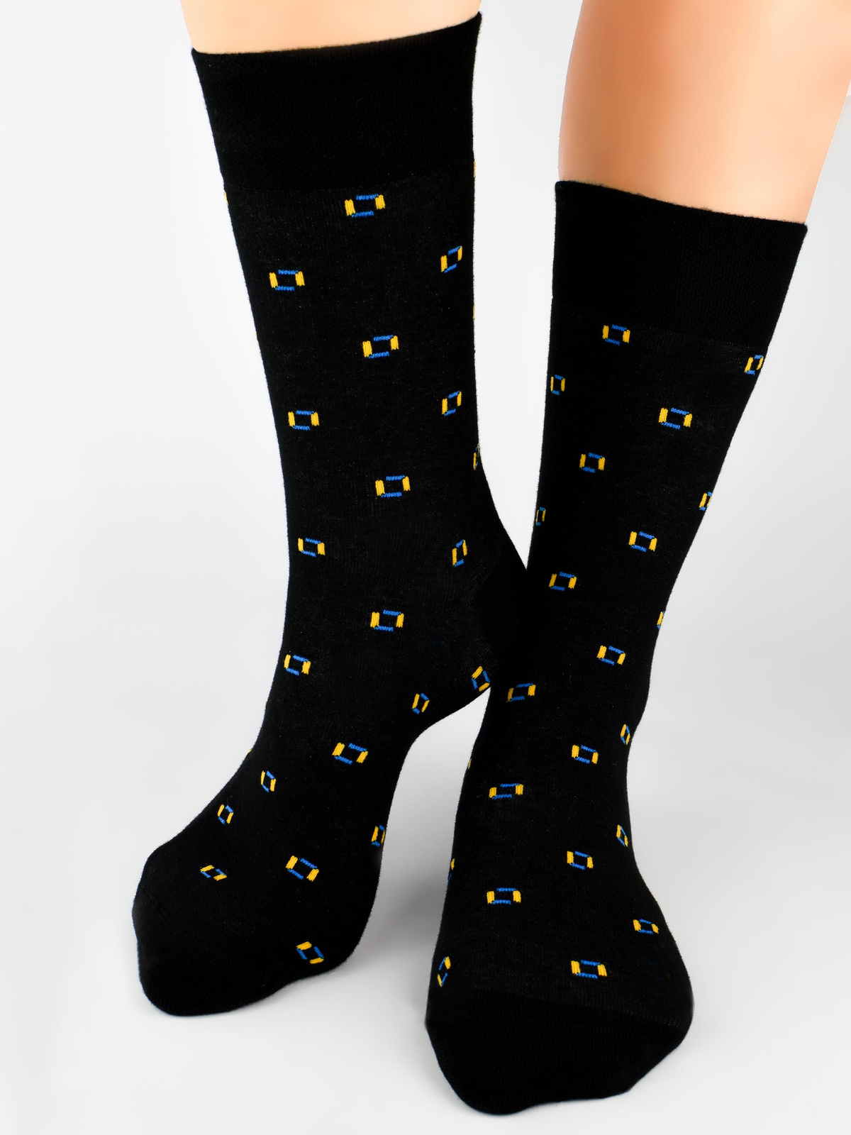 - Stylowe skarpetki męskie z geometrycznym wzorem. Eleganckie modne wzorzyste skarpetki męskie.