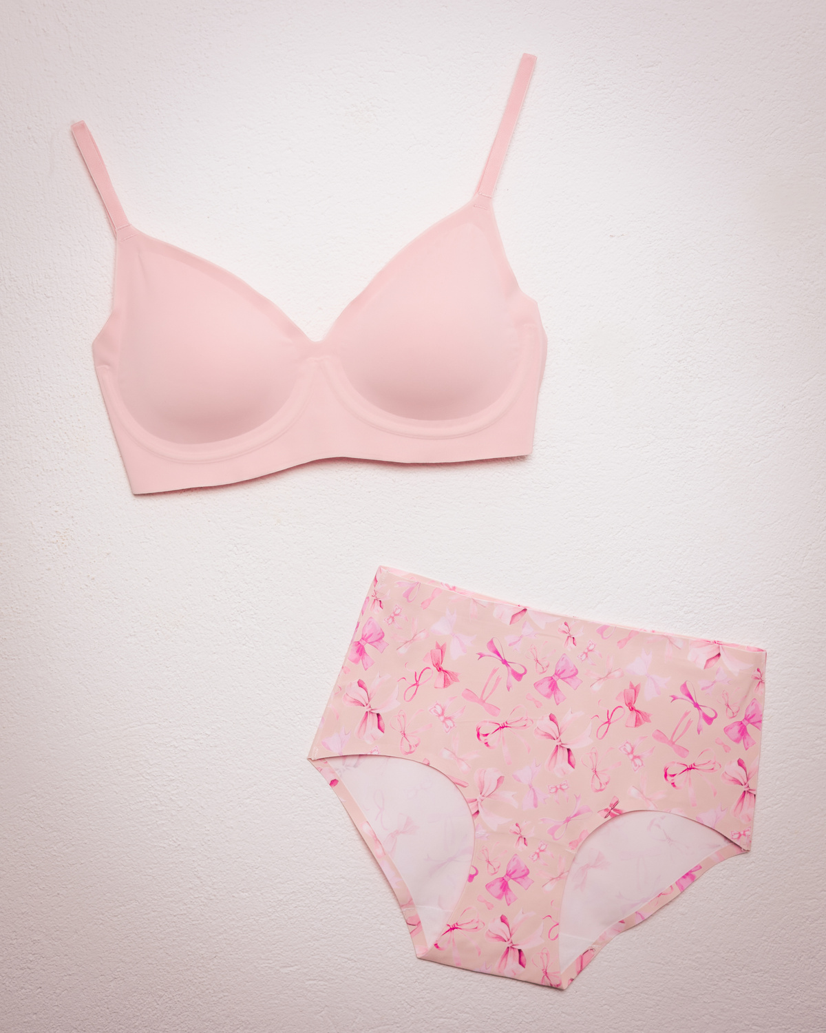 - Bezszwowy biustonosz w wyjmowanymi wkładkami. Ramiączka cienkie, regulowane. Góra i dół wykończona laserowo.