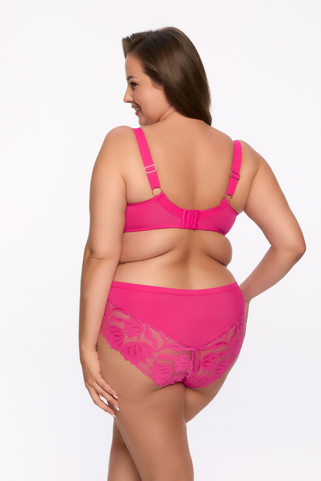 Model ten wyposażony jest w regulowane, szerokie ramiączka, które oferują dodatkowe wsparcie, minimalizując nacisk na ramiona. Zapięcie na haftki z tyłu jest regulowane, co pozwala na idealne dopasowanie do indywidualnych potrzeb każdej kobiety. Fiszbiny boczne świetnie modelują sylwetkę, zbierając i podnosząc biust, co sprawia, że biustonosz podkreśla walory kobiecej figury.