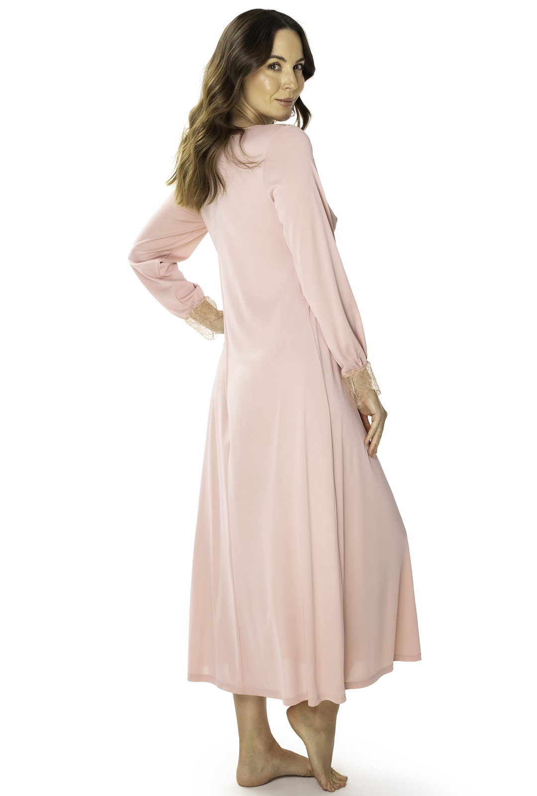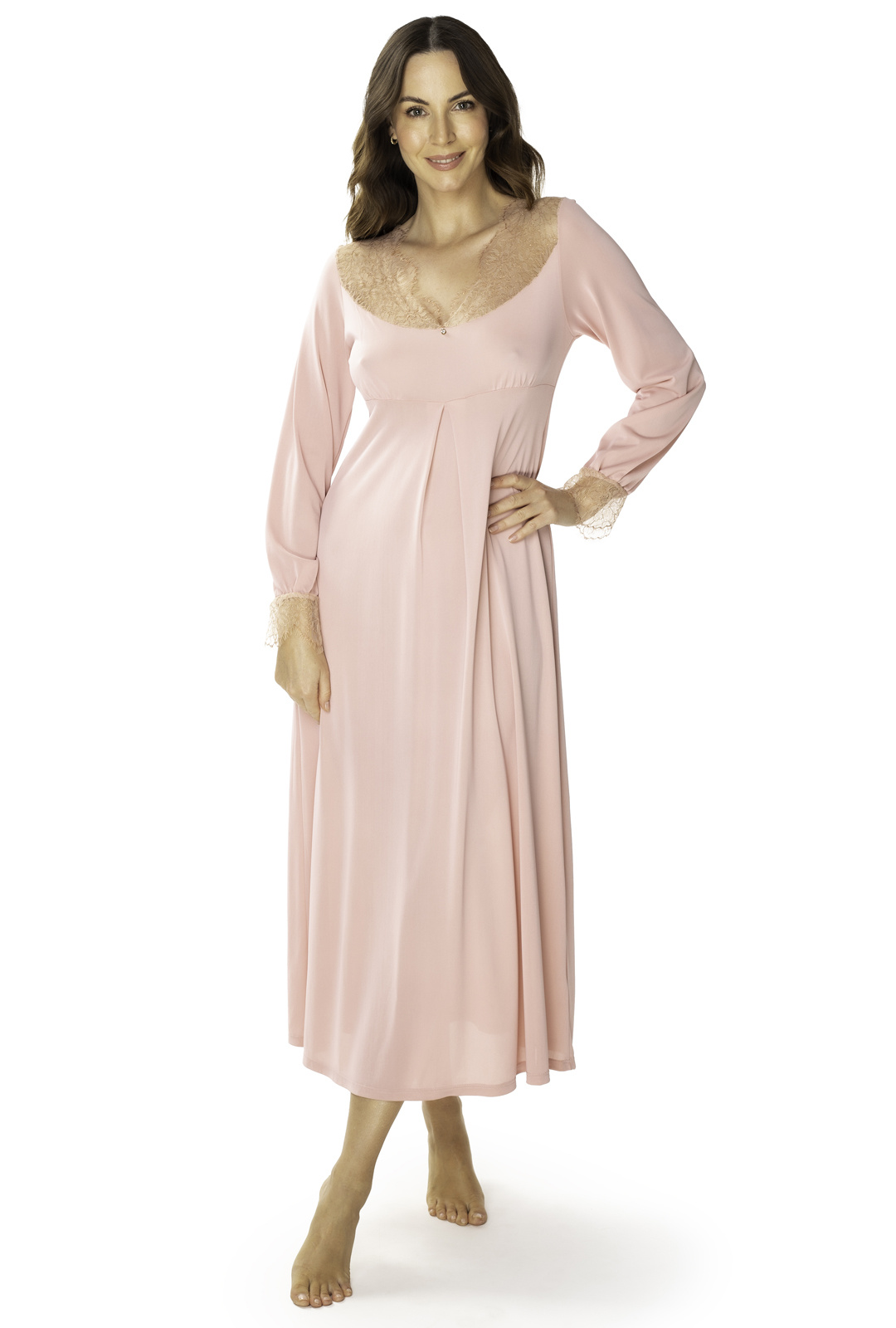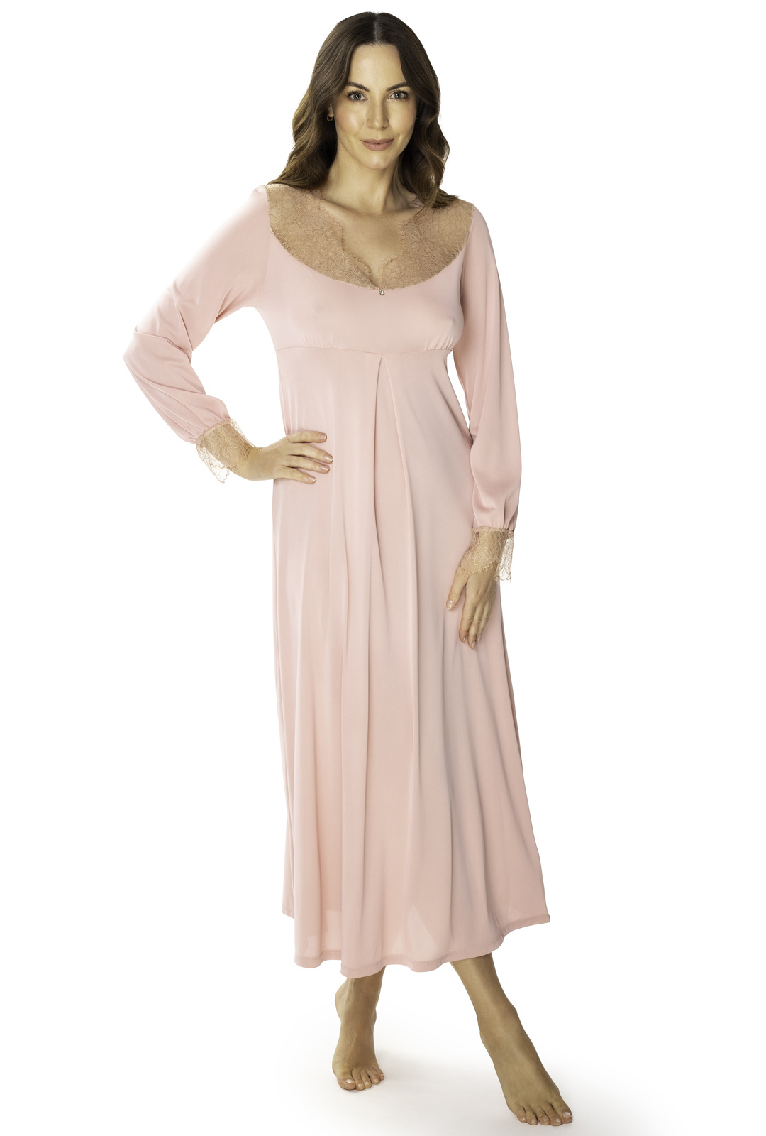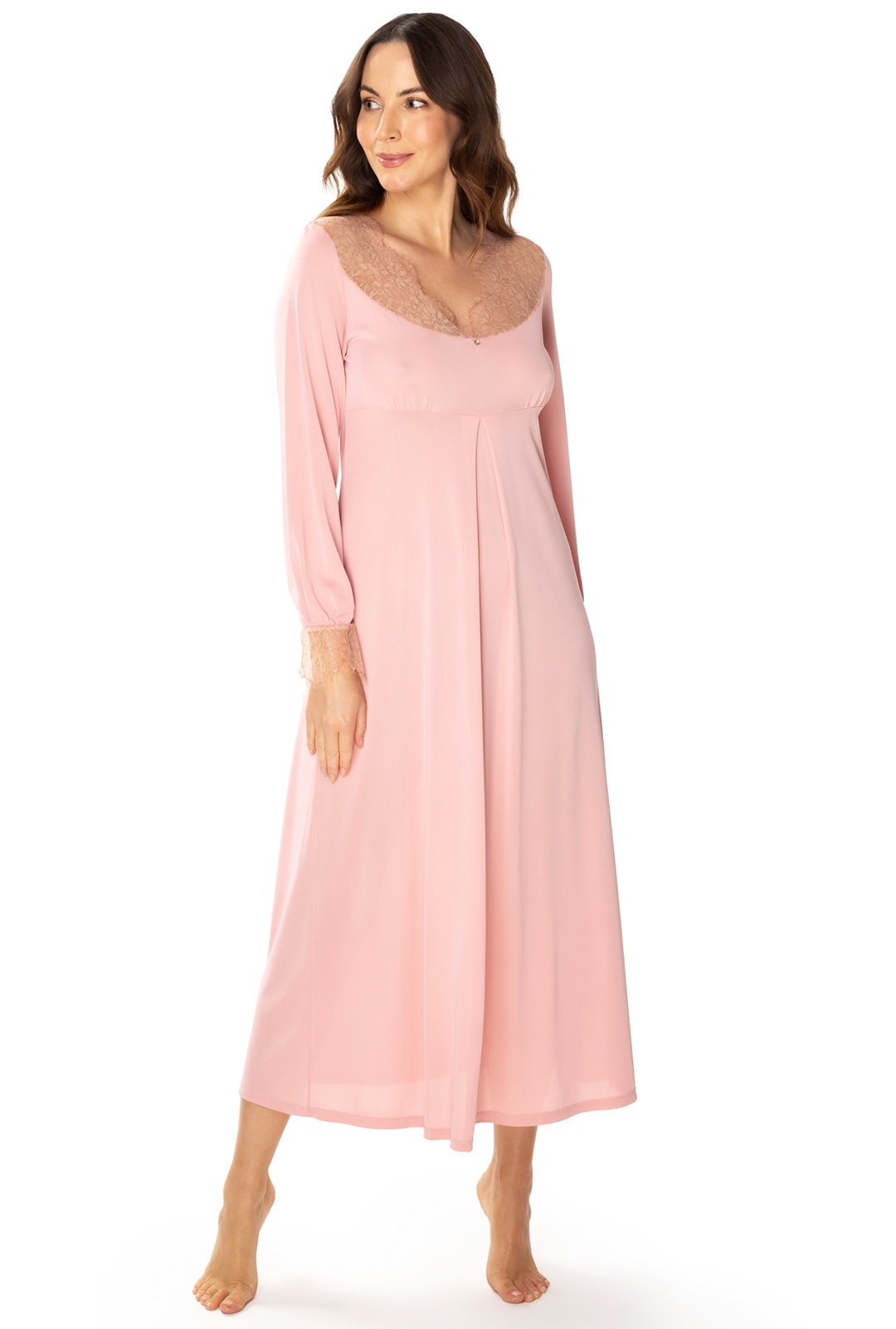 - Bardzo efektowna długa koszula nocna z dekoltem ozdobionym koronką. Koszula z długim rękawem, o luźnym kroju. Ekskluzywna bielizna nocna