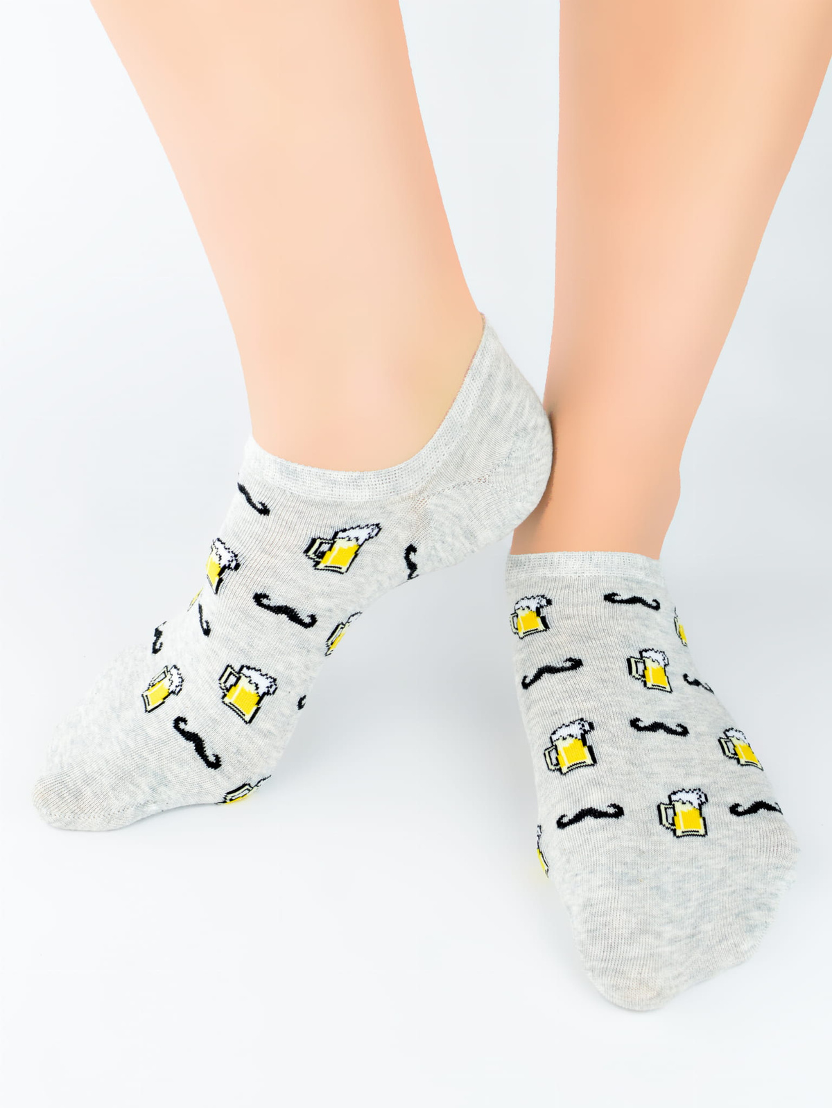 Jasnoszare męskie stopki ze wzorem w kufle piwa Noviti ST002 M04