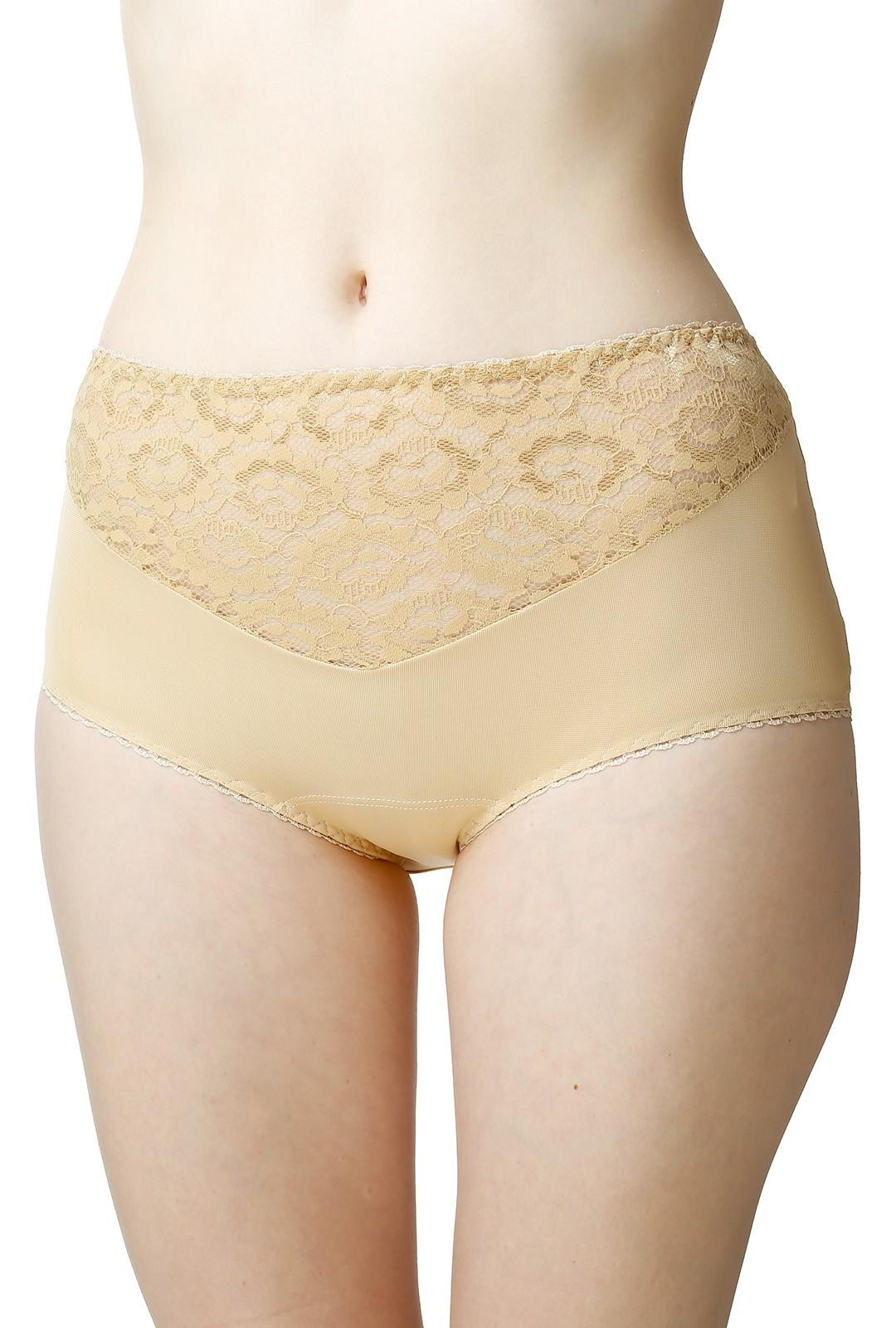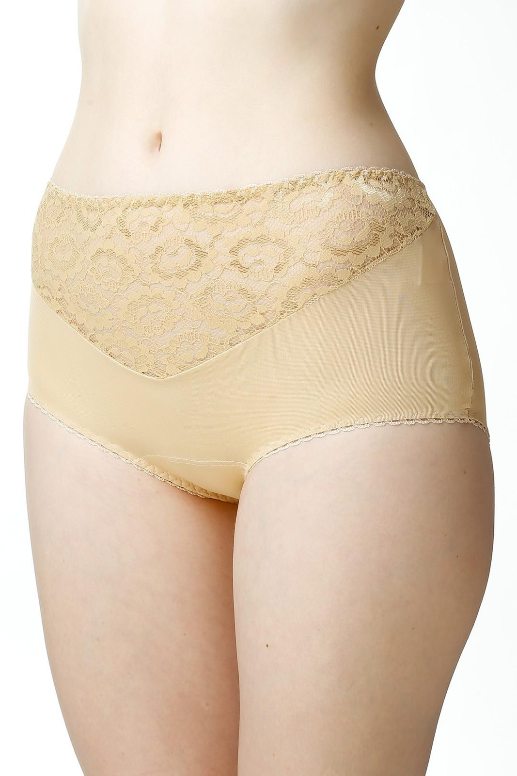 Figi damskie Liza - Wysoki stan z koronką - Kolor: beżowy