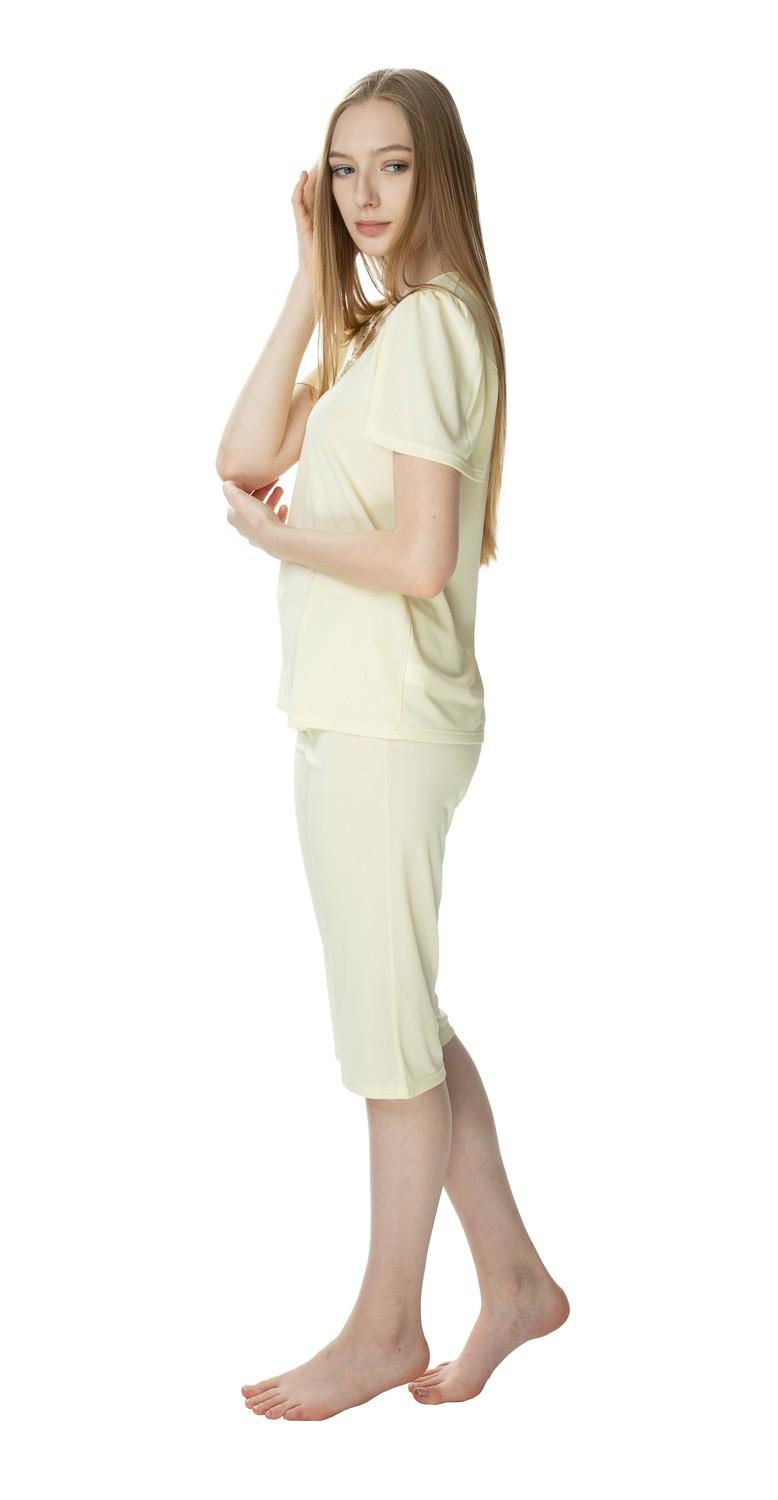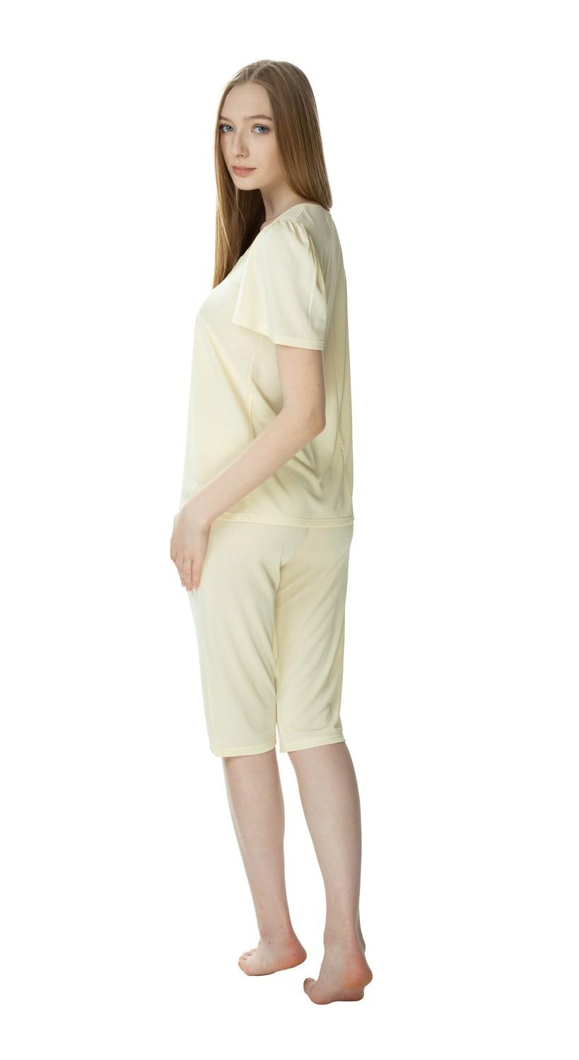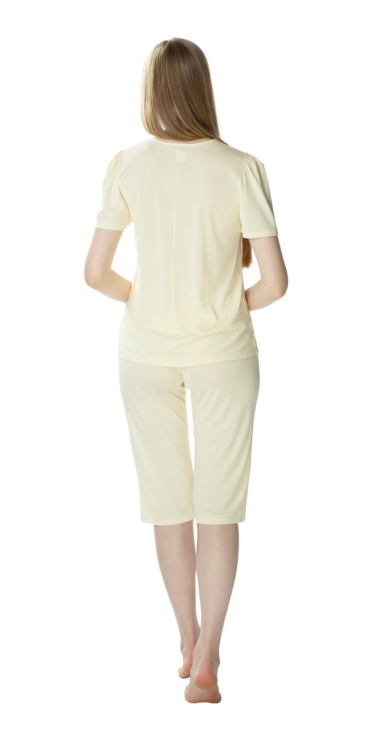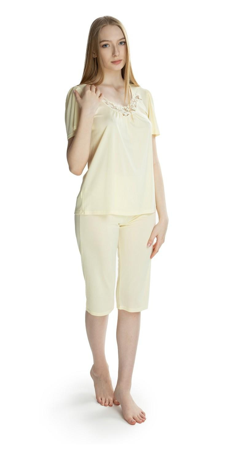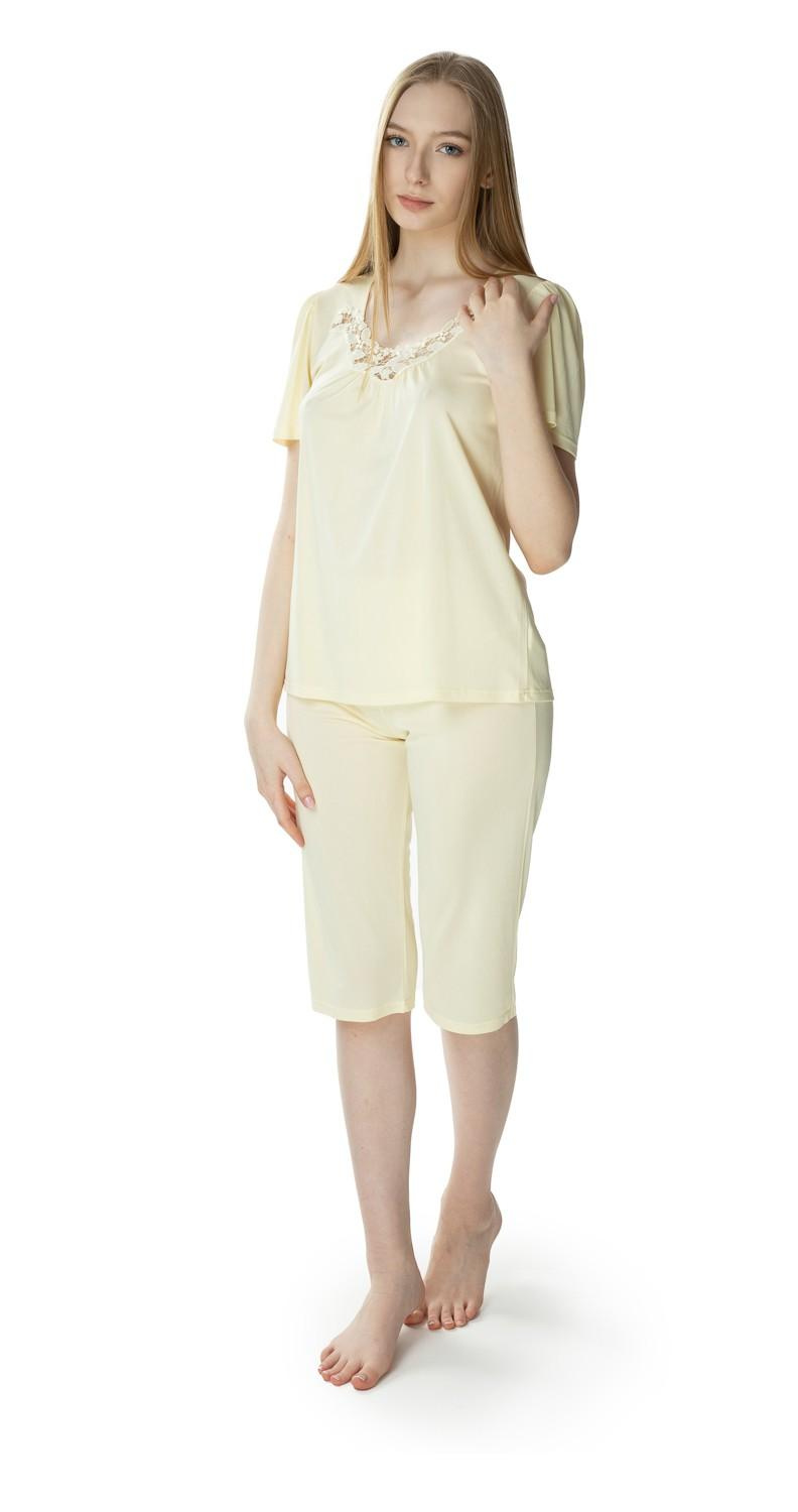 Nasza piżama Matylda 3639 została zaprojektowana z myślą o kobietach ceniących sobie wygodę i elegancki wygląd. Krótki rękaw oraz dekolt okrągły dodają lekkości, a spodnie 3/4 idealnie sprawdzą się w cieplejsze dni. Kolor kremowy nadaje całości subtelny urok, który z pewnością podkreśli Twoją naturalną urodę.
