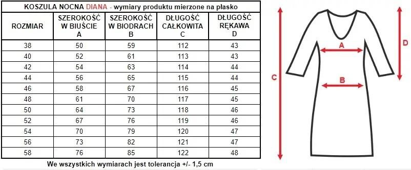 Dzięki luźnemu krojowi, koszula Diana doskonale dopasowuje się do sylwetki, oferując swobodę ruchu oraz komfort przez całą noc. 3/4 rękawy z subtelnym haftem lub koronką dodają koszuli wyjątkowego uroku.