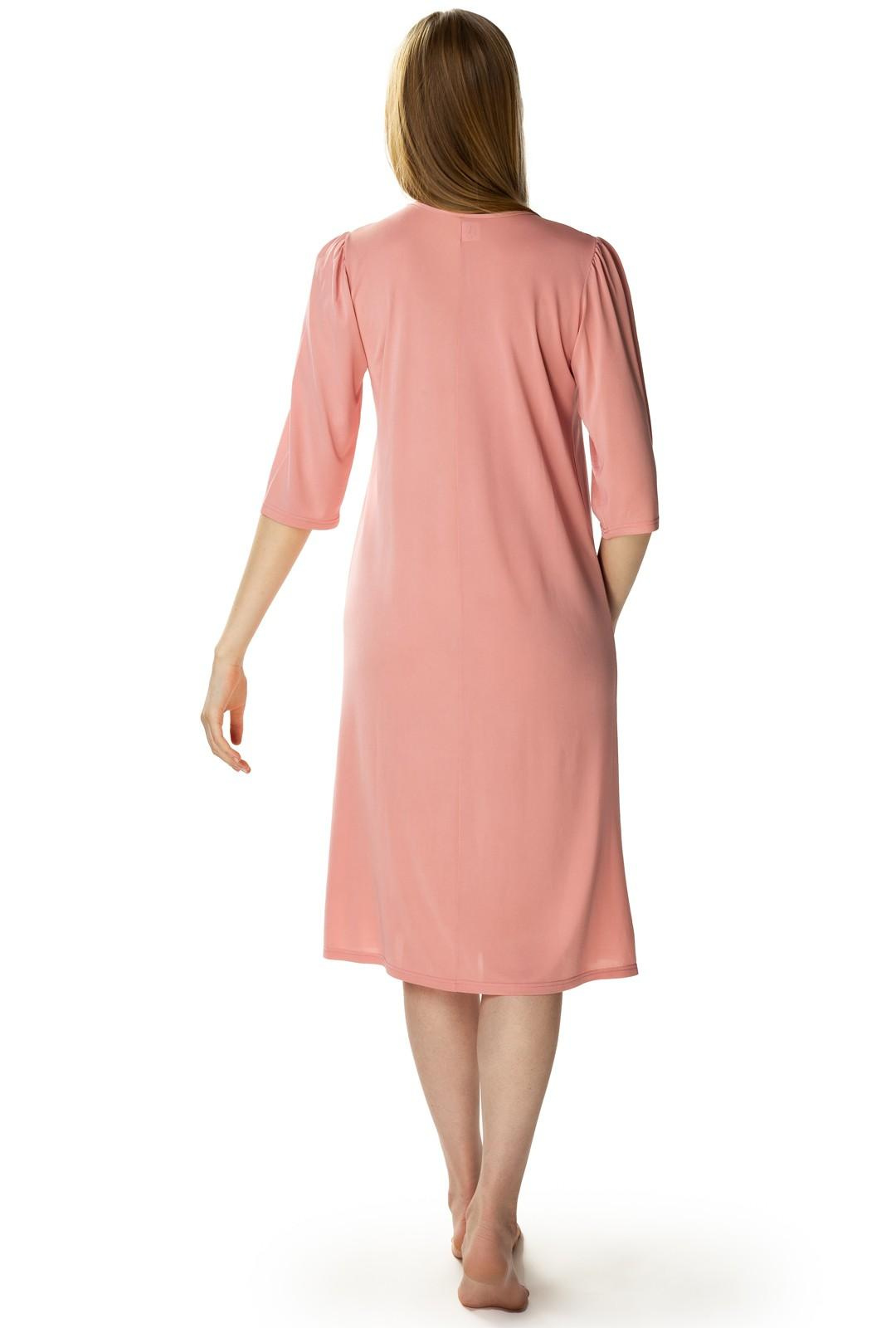 - Koszula nocna Diana z rękawem długości 3/4 z wysokiej jakości jedwabiu wiskozowego. Długość sięgającej za kolano, idealnie sprawdzi się o każdej porze roku. Luźny krój oraz miękki i delikatny w dotyku materiał dostarczy wygody i komfortu podczas snu.