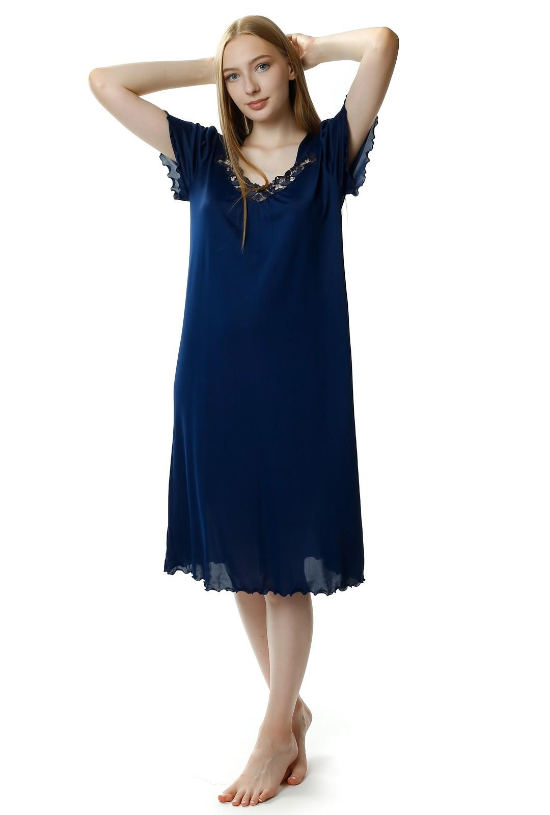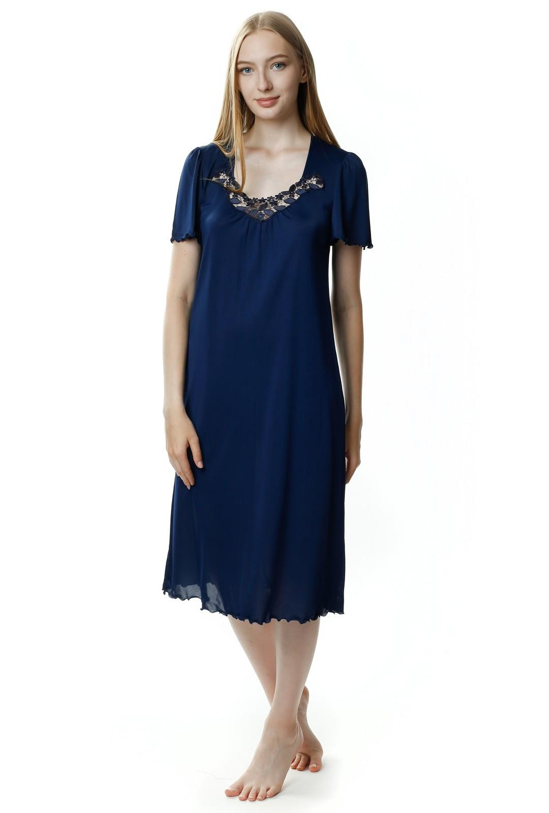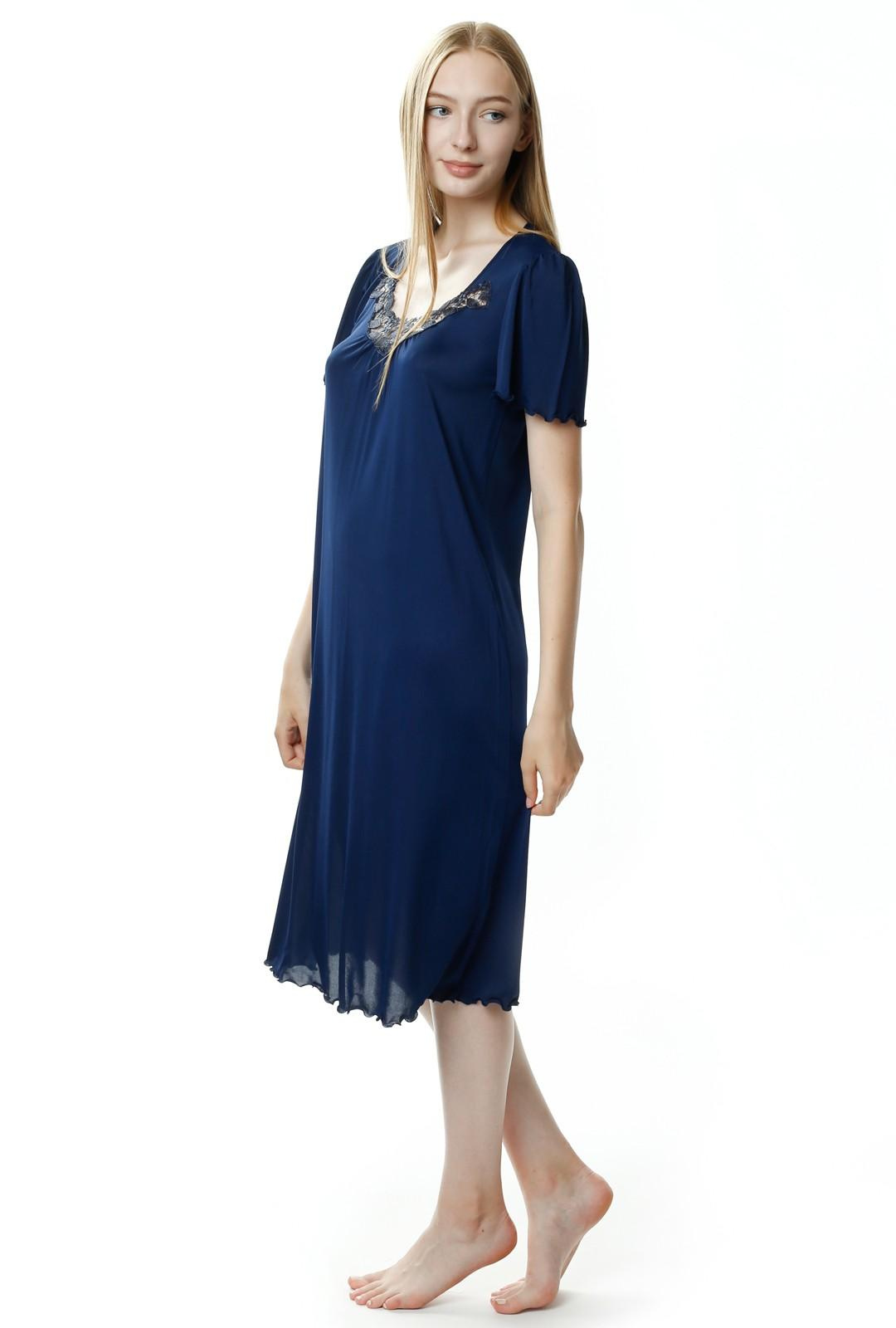 - Koszula nocna Mewa 4112, z krótkim rękawem, długa, za kolano. Motywem zdobniczym jest efektowna aplikacja przy dekolcie. Wykonana z jedwabiu wiskozowego Vistex- przewiewnego, antyalergicznego, higroskopijnego.