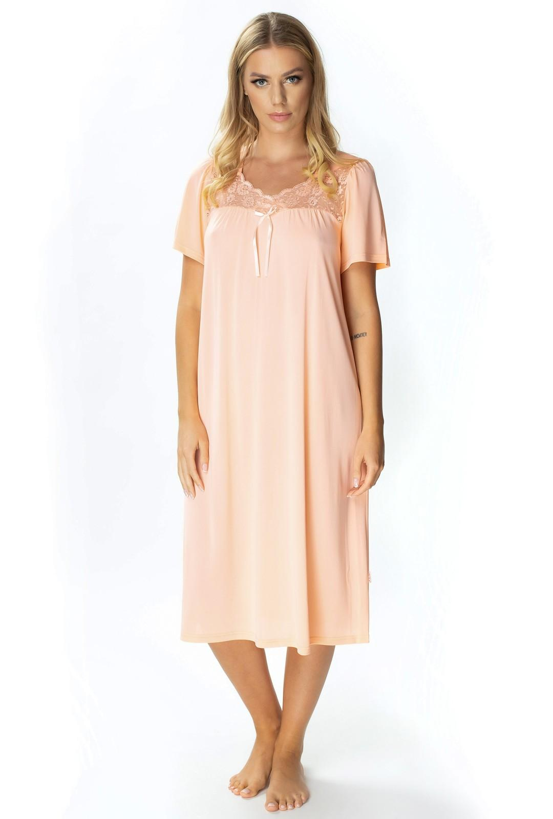 Kobieca koszula nocna Berenika 1693 w kolorze morelowym to idealny wybór dla każdej kobiety, która ceni sobie komfort i elegancję podczas snu. Stworzona z myślą o wygodzie, ta nowoczesna bielizna nocna łączy w sobie wyjątkowy styl oraz wysoką jakość wykonania, co sprawia, że poczujesz się w niej pięknie i atrakcyjnie.