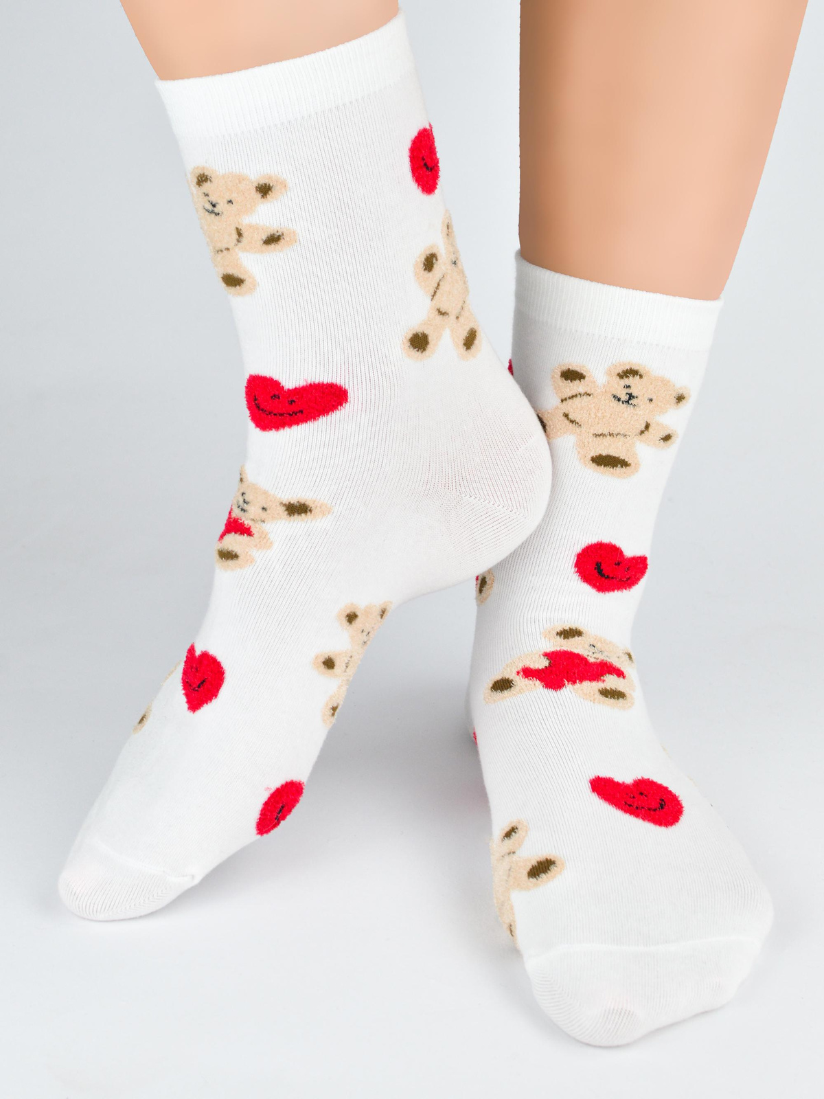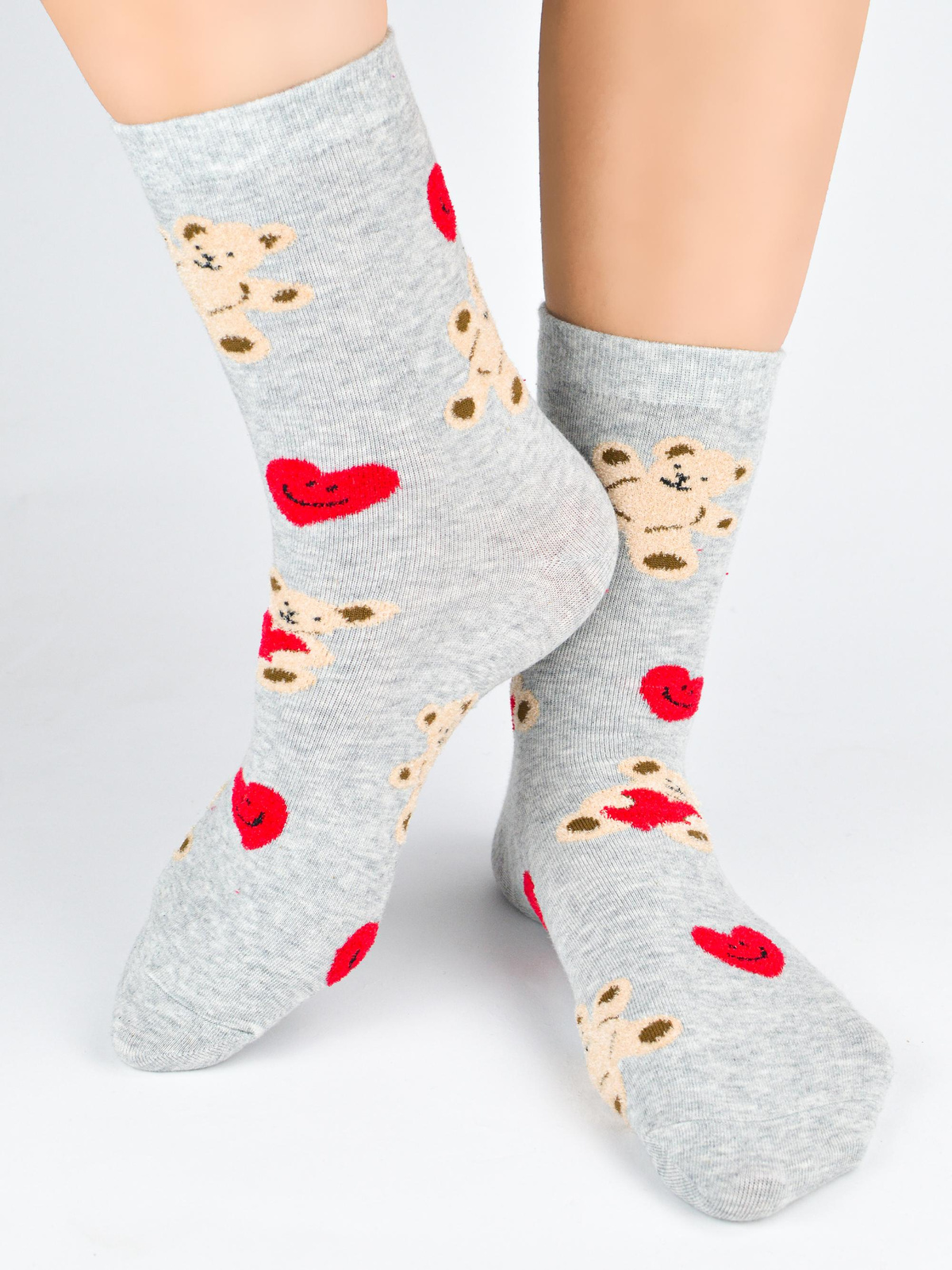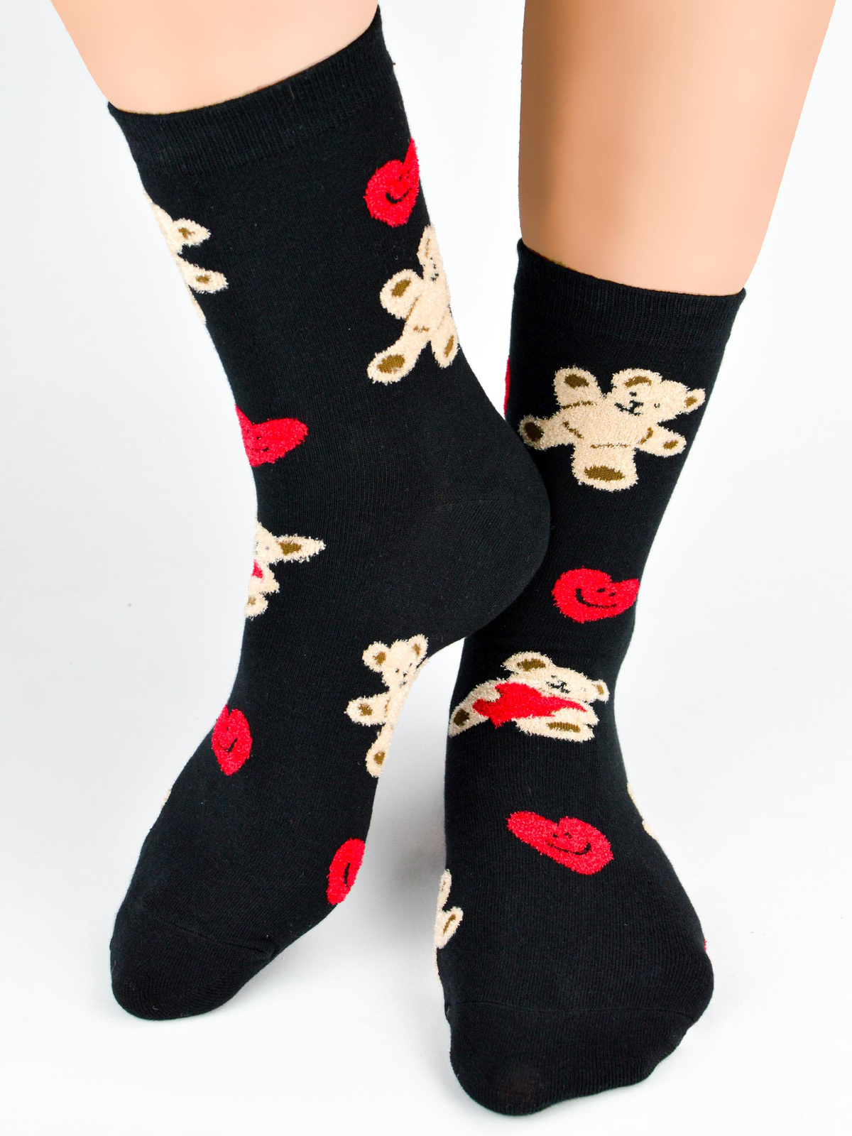 Eleganckie i komfortowe skarpety bawełniane z motywem misia - Noviti SB155