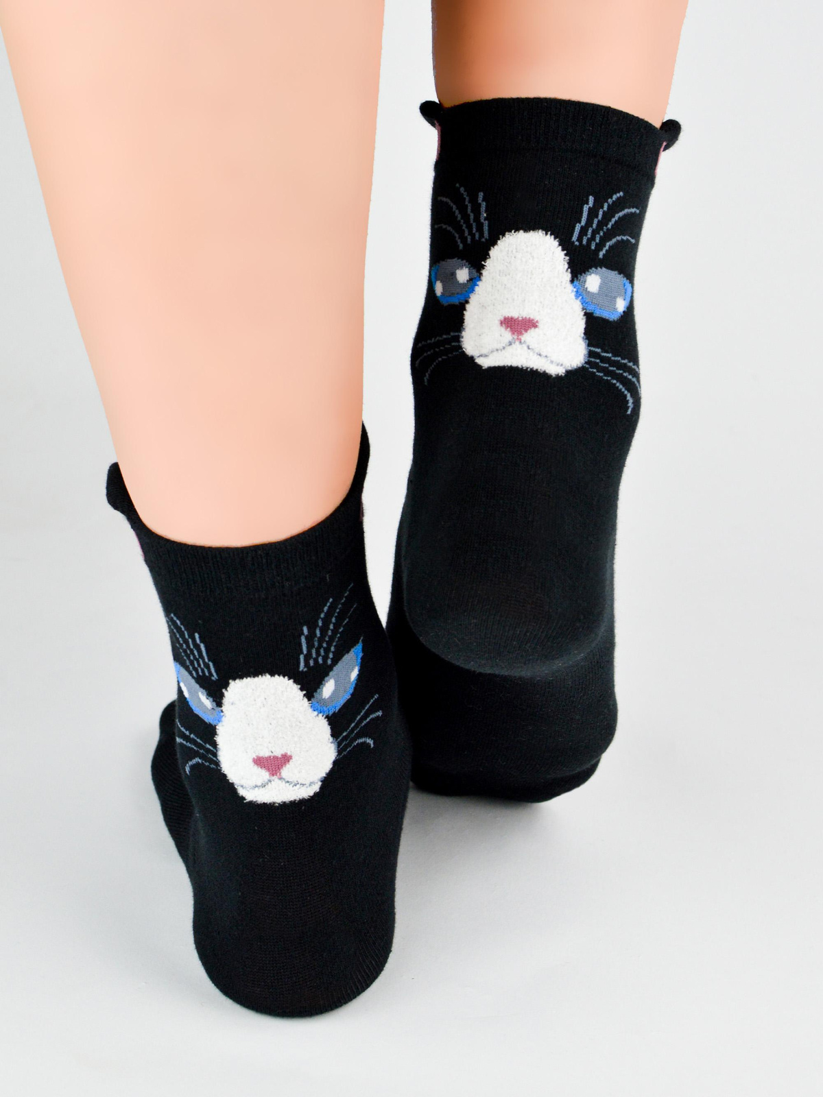 - Urocze, ciepłe krótkie skarpetki z motywem buźki kota . W paczce 6 par w 3 ładnych kolorach.