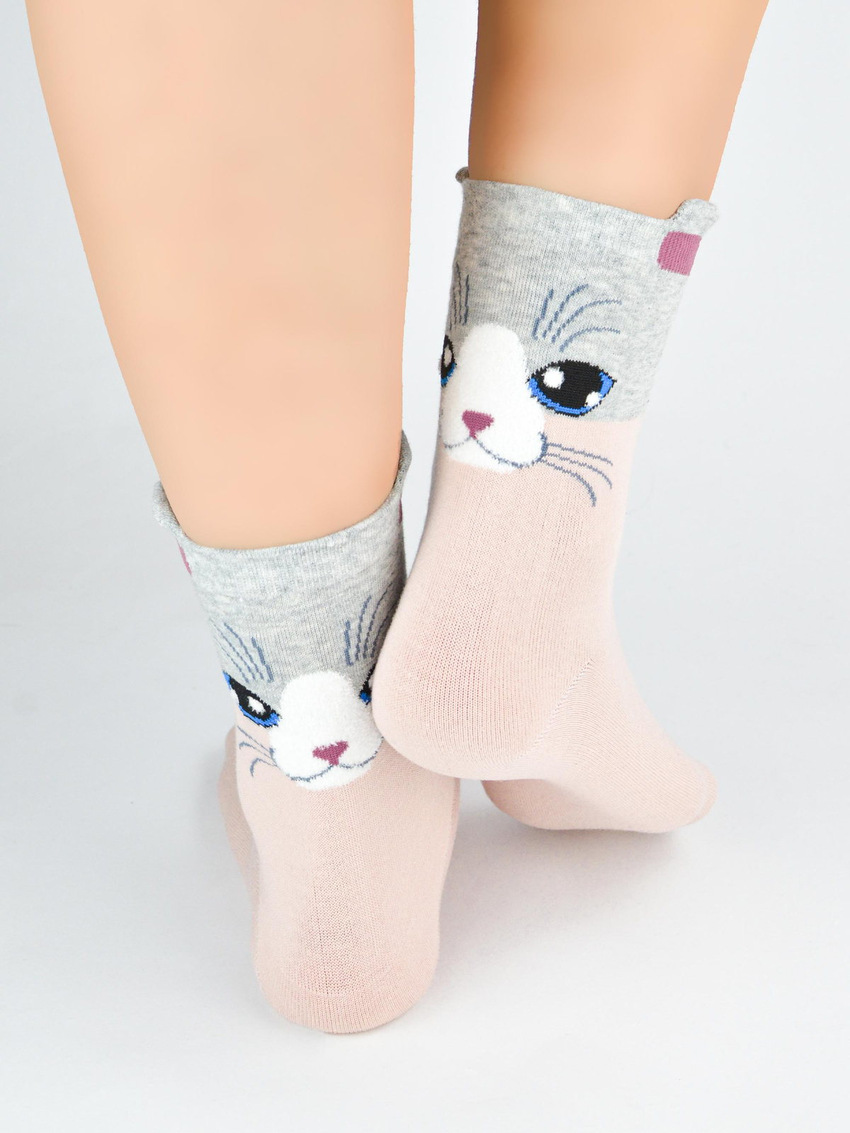 Odkryj radość noszenia skarpet bawełnianych kot buźka SB156 mix od Noviti!