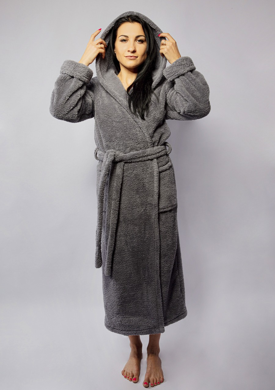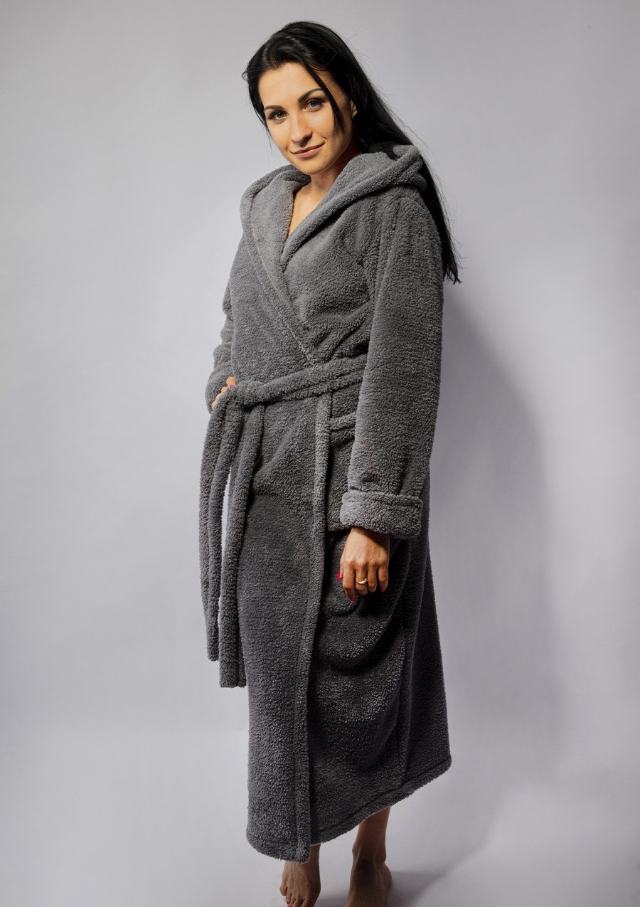 PODOMKA Z KAPTUREM USZYTA Z NIEZWYKLE MIĘKKIEGO MATERIAŁU BARDZO DOBREJ JAKOŚCI PO BOKACH DWIE KIESZENIE RĘKAWY Z MANKIETAMI DO PODOMKI JEST RÓWNIEŻ PASEK DŁUGOŚĆ PODOMKI - 120 CMLubisz, gdy mięciutki materiał dotyka Twojego ciała, a Ty możesz się nim otulić, zapomnieć o chłodzie i po prostu się zrelaksować? Mamy coś właśnie dla Ciebie! Długa podomka Diana sprawi, że poczujesz się komfortowo, ale wciąż będziesz wyglądać pięknie! Miękki, pluszowy materiał sprawi, że poczujesz się jak pod bardzo miękkim kocem. Możesz wybrać jeden z wielu dostępnych kolorów. Długość szlafroka, dwie kieszenie po bokach oraz obszerny kaptur pozwalają na całkowite ukrycie się w nim – brzmi jak marzenie, które bardzo łatwo możesz spełnić! Dołączony do zestawu pas pozwoli Ci szczelnie się owinąć i zrelaksować z dobrą książką, serialem lub lampką wina – decyzja należy do Ciebie. Zadbaj o swój komfort i dobre samopoczucie kupując mięciutki i niezwykle uroczy szlafrok Diana w Twoim ulubionym kolorze! Jak prać i prasować? Taki materiał najlepiej prać ręcznie w temperaturze 30°C. Proszę nie chlorować, nie czyścić chemicznie i nie wirować. Prasować w temperaturze 110°C.Otul się najbardziej miękkim i luksusowym szlafrokiem, jakiego kiedykolwiek doświadczyłeś. Nasze puchowe szlafroki zapewnią Ci komfort i wygodę przez cały dzień. Bez względu na to, czy odpoczywasz w domu, czy szykujesz się na wyjazd, te szlafroki są idealne na każdą okazję. Skład surowcowy: 100% poliester.