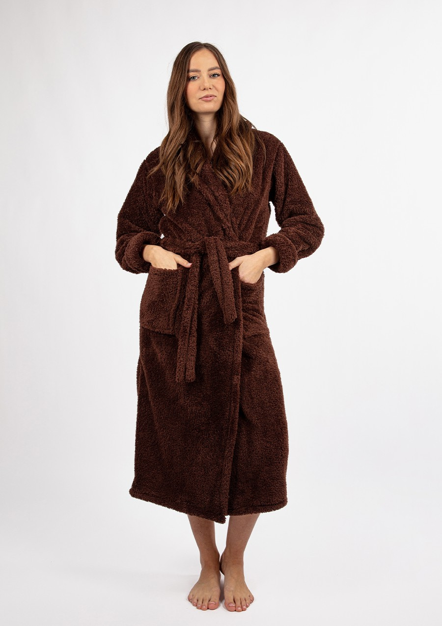 Odkryj niezrównany komfort z długim szlafrokiem ELIZA w odcieniu czekolady