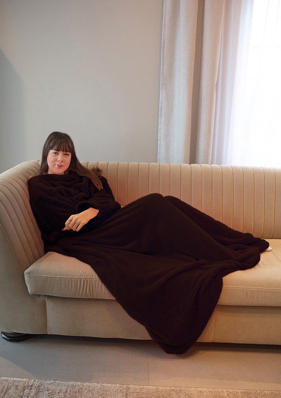 Odkryj wygodę i ciepło z kocem z rękawami Dkaren – Puch Czekolada