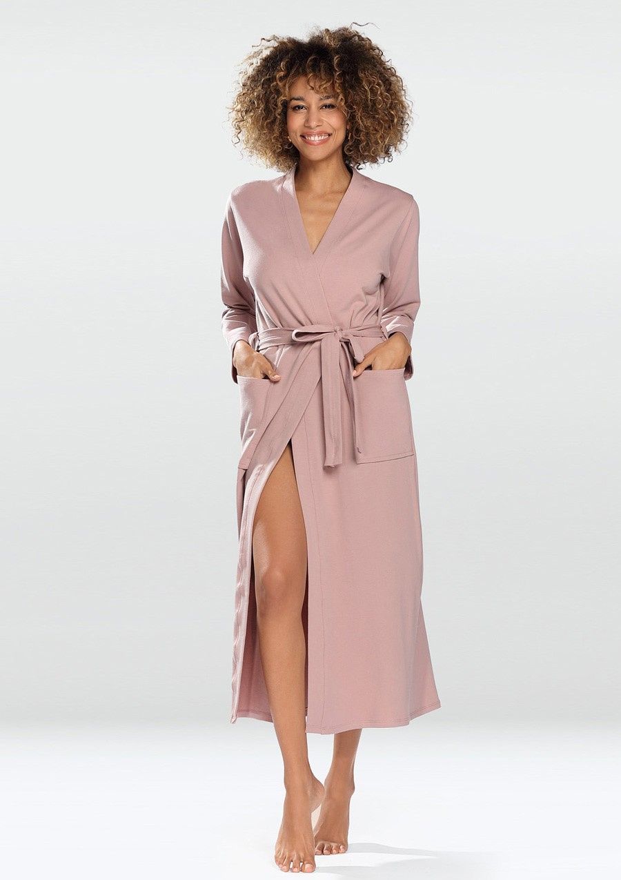 Bawełniany szlafrok/podomka MELISSA - pudrowy róż - Dkaren