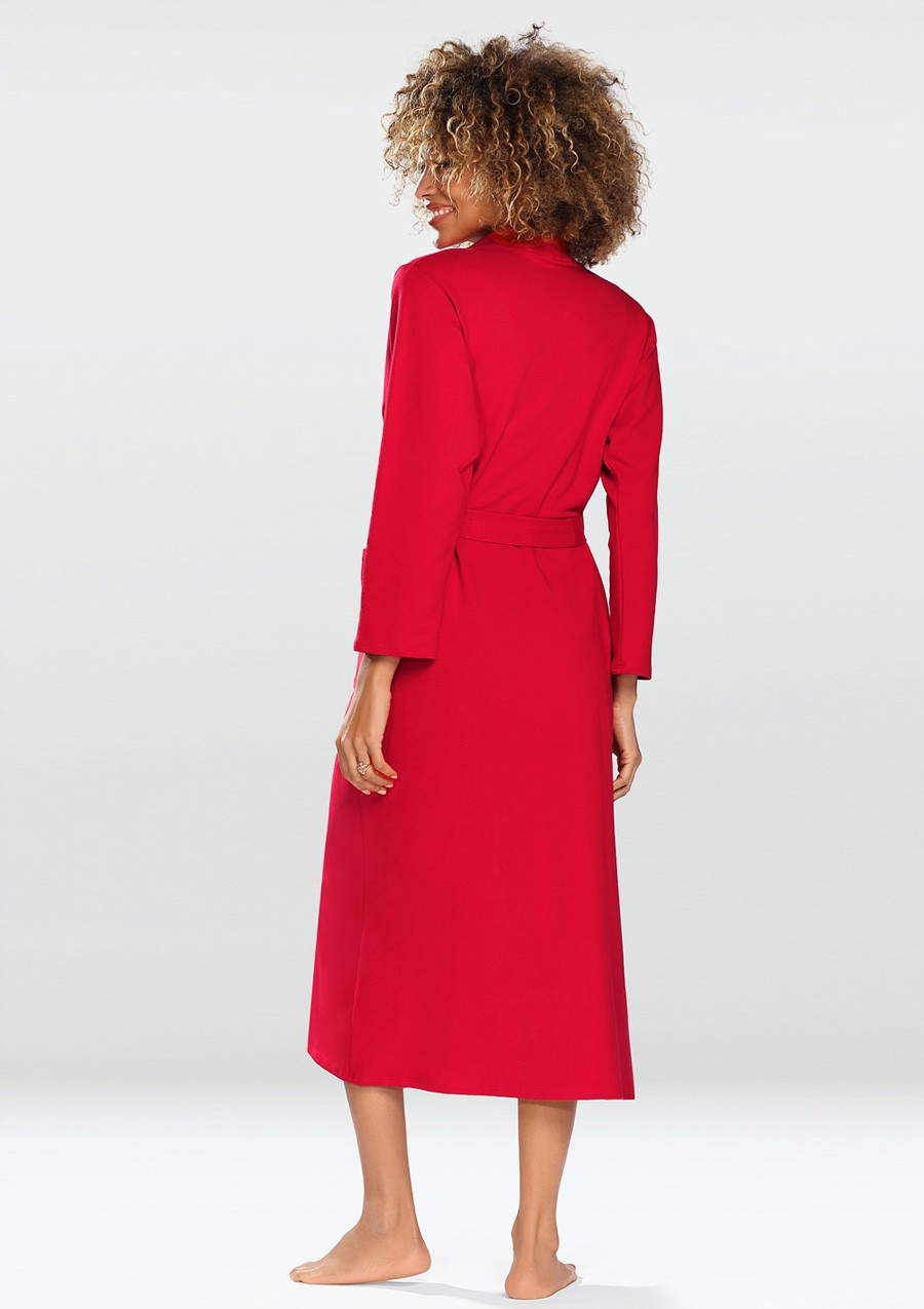 Intensywny czerwony kolor sprawia, że szlafrok MELISSA przyciąga wzrok i dodaje pewności siebie. Prosty, gładki fason sprawdzi się w każdej domowej stylizacji, a jego elegancki wygląd pozwala na noszenie go zarówno w strefie relaksu, jak i podczas przyjmowania gości.