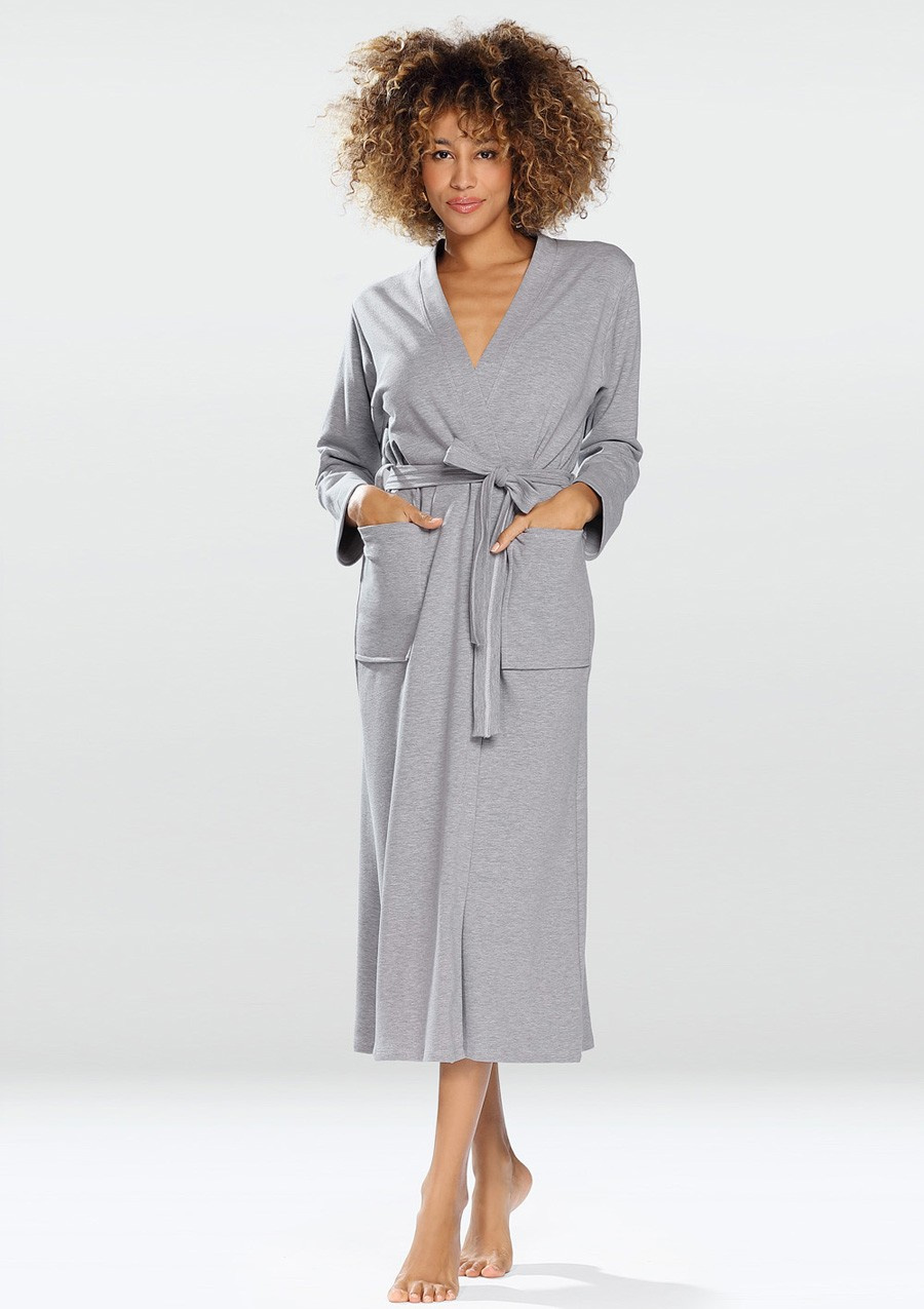 - Stylowy design: Klasyczny szary kolor i gładkie wykończenie sprawiają, że szlafrok ten jest zarówno elegancki, jak i uniwersalny, doskonale komponując się z innymi elementami garderoby.