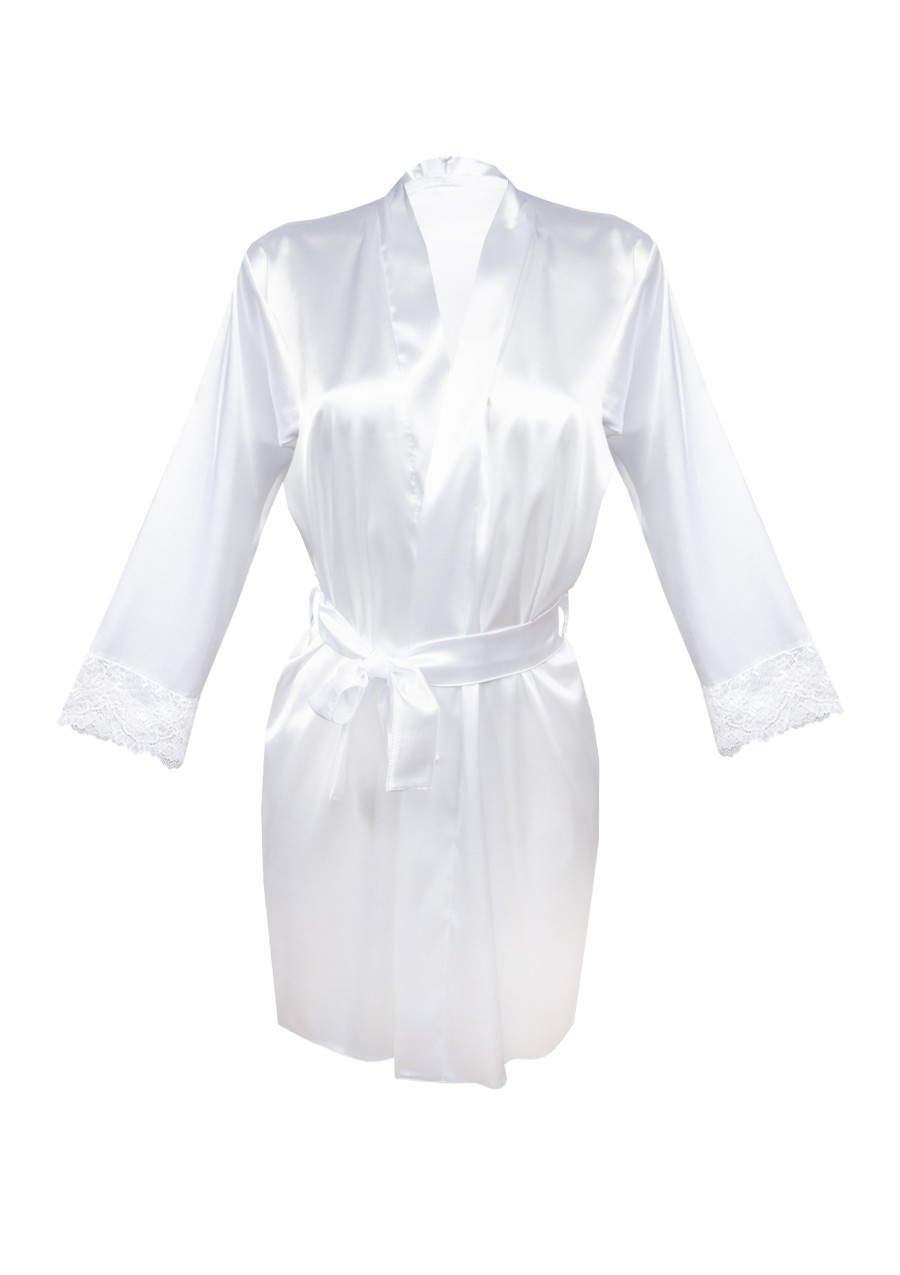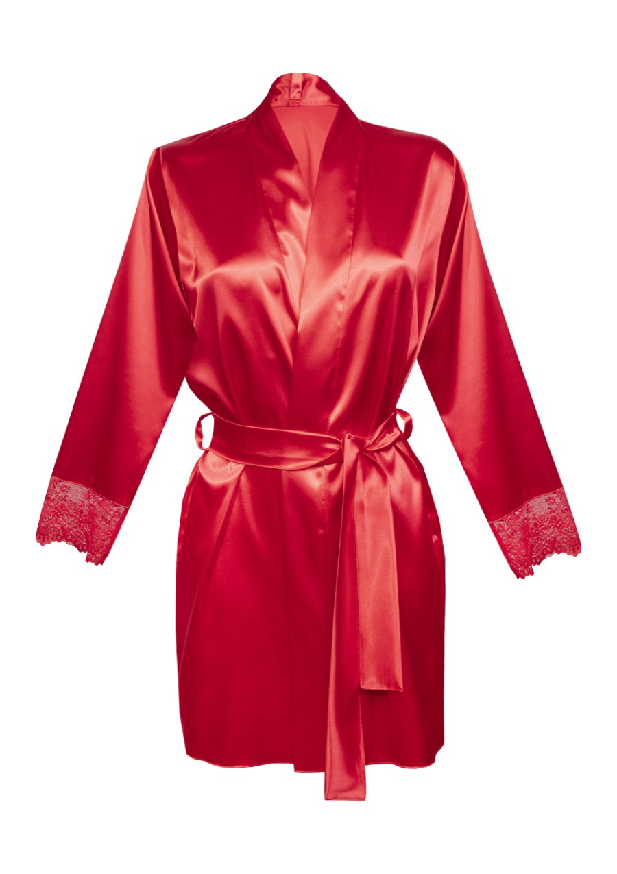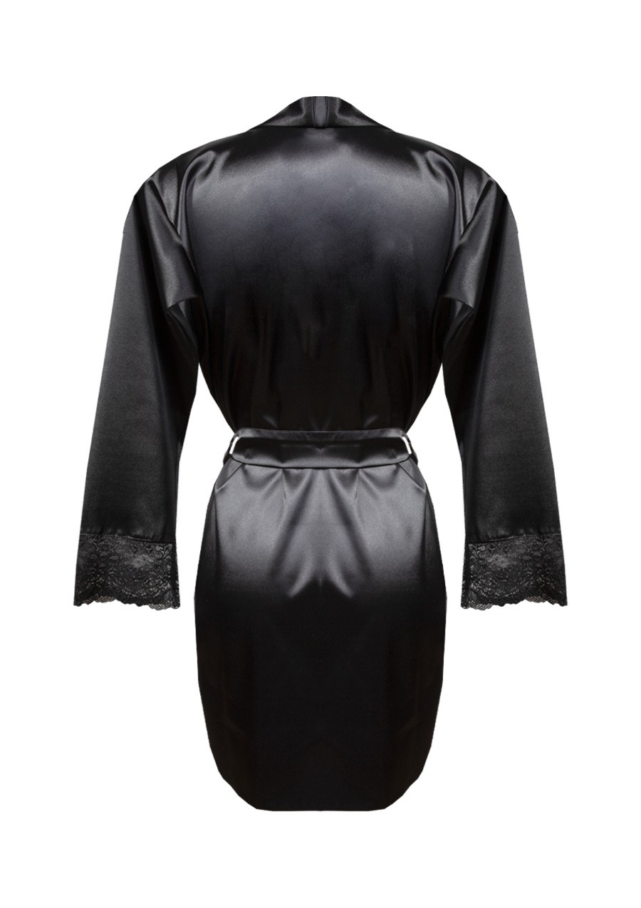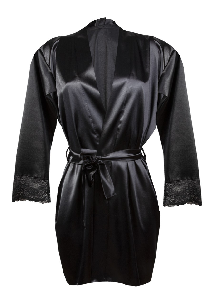 - Klasyczny, satynowy szlafroczek od marki Dkaren. Delikatna koronka na obszyciu rękawów dodaje pikanterii, a idealnie skrojony klasyczny dizajn- eksponuje wszystko co w sylwetce najlepsze.