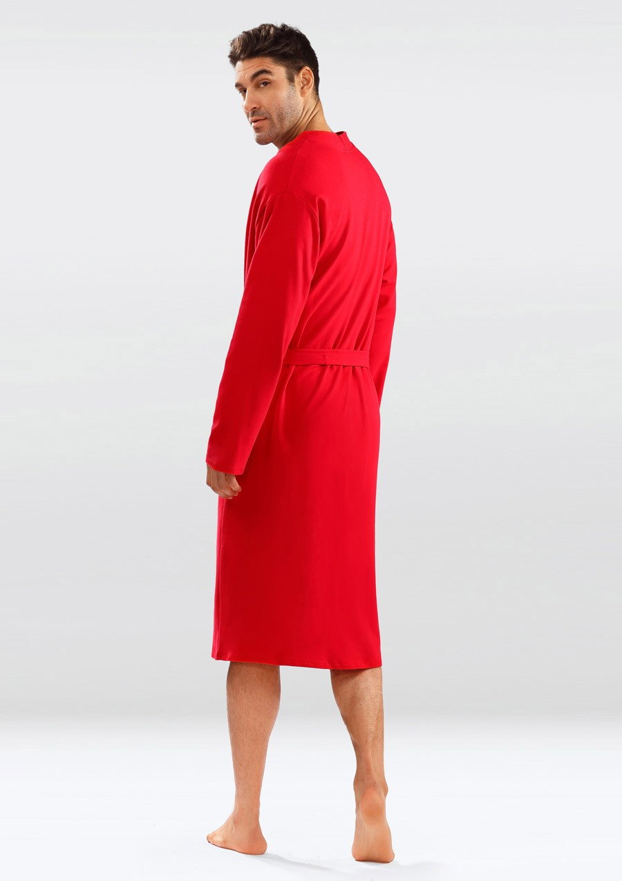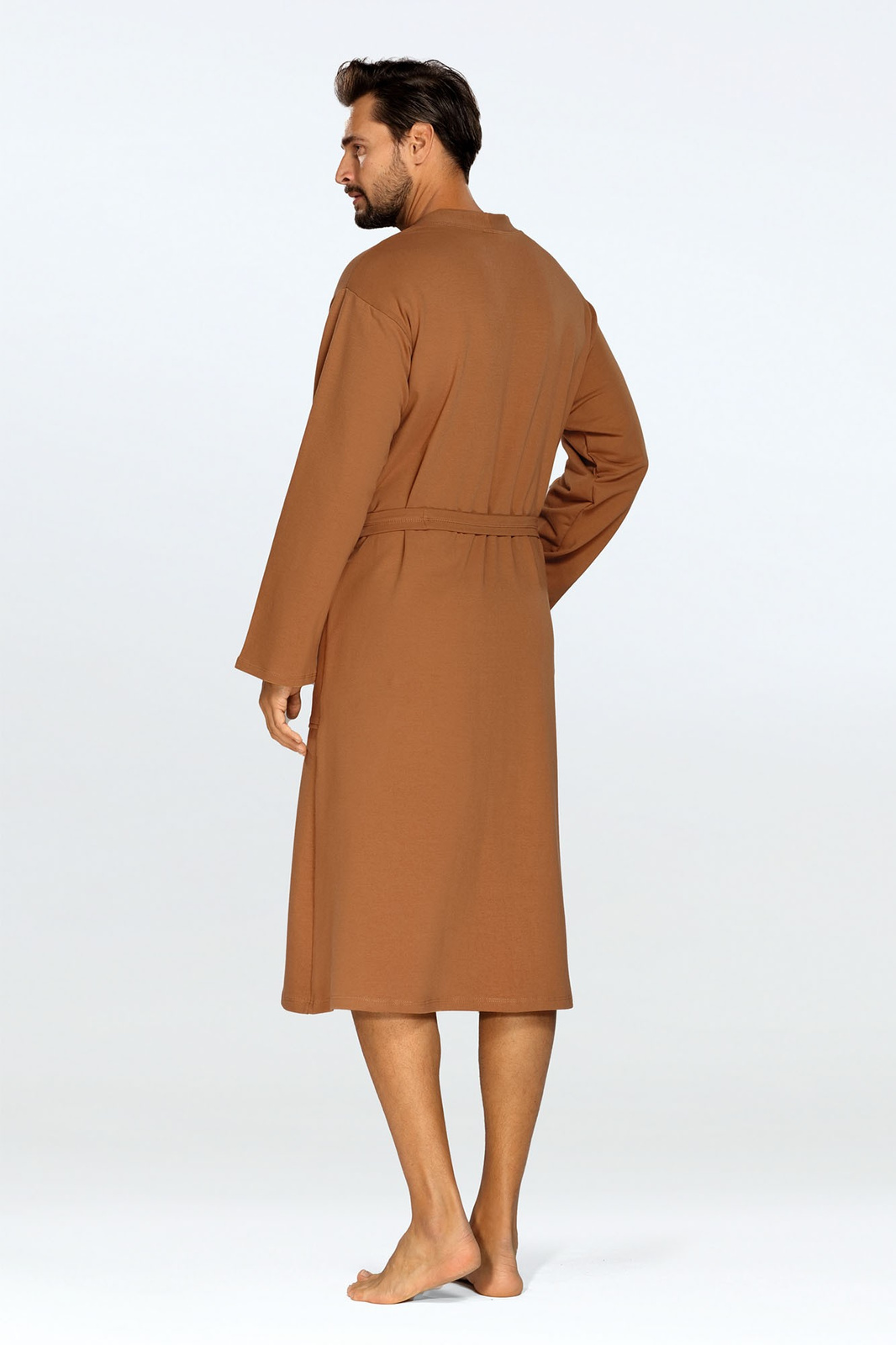 - Wiązanie w pasie: Długi fason z praktycznym wiązaniem pozwala na idealne dopasowanie szlafroka do sylwetki, co zapewnia elegancki wygląd i komfort noszenia.