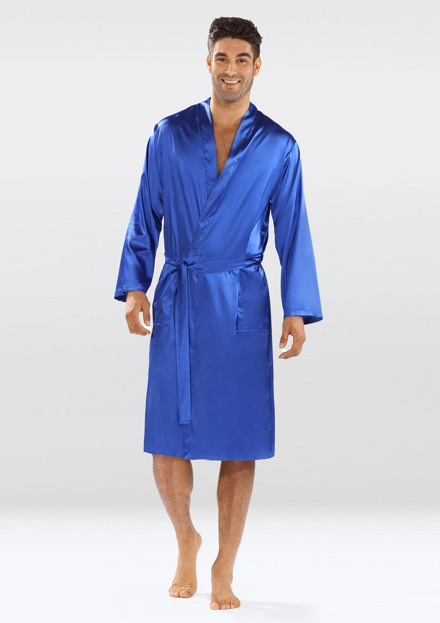 - Męski szlafrok wykonany z satyny. Wiązany w pasie. Miękki i wygodny.