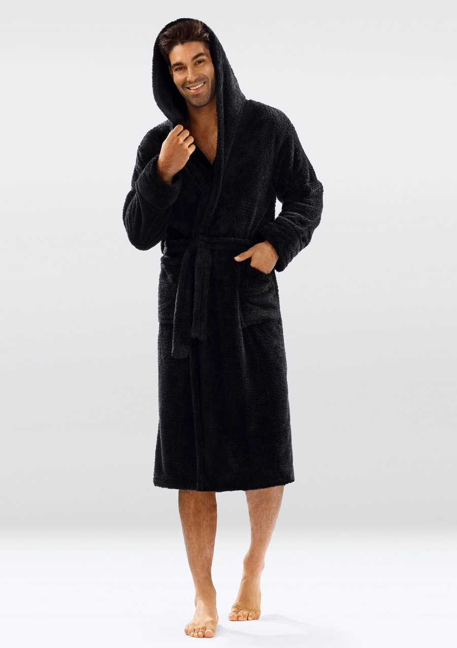 Puchaty szlafrok męski z kapturem Dkaren – komfort na każdą porę