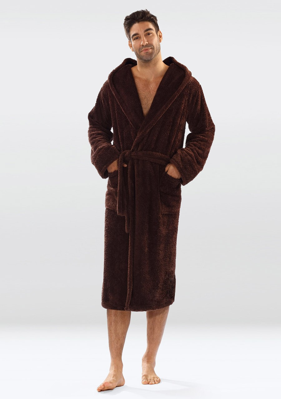 Odkryj Puchaty Szlafrok Męski z Kapturem Dkaren - Czekolada