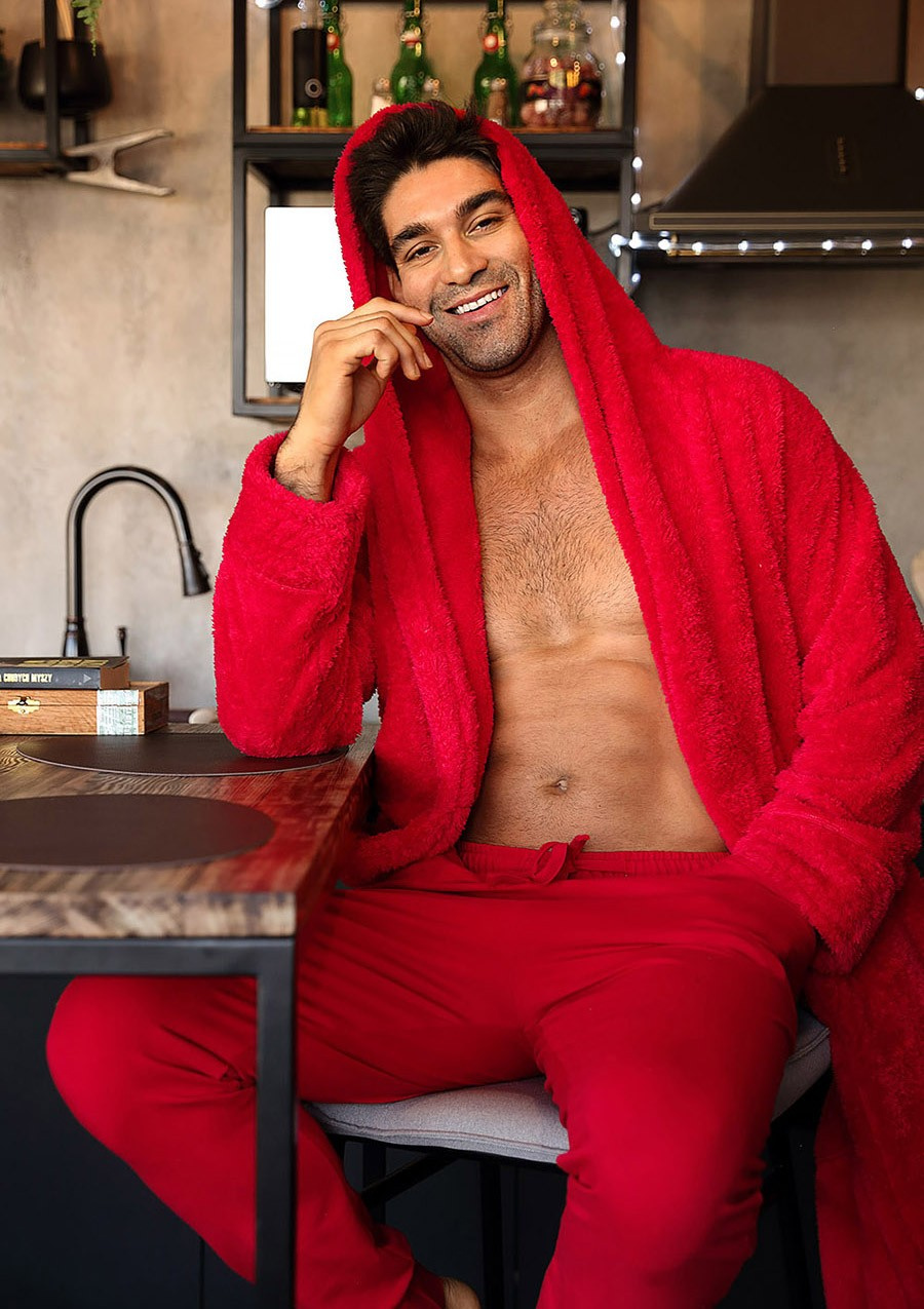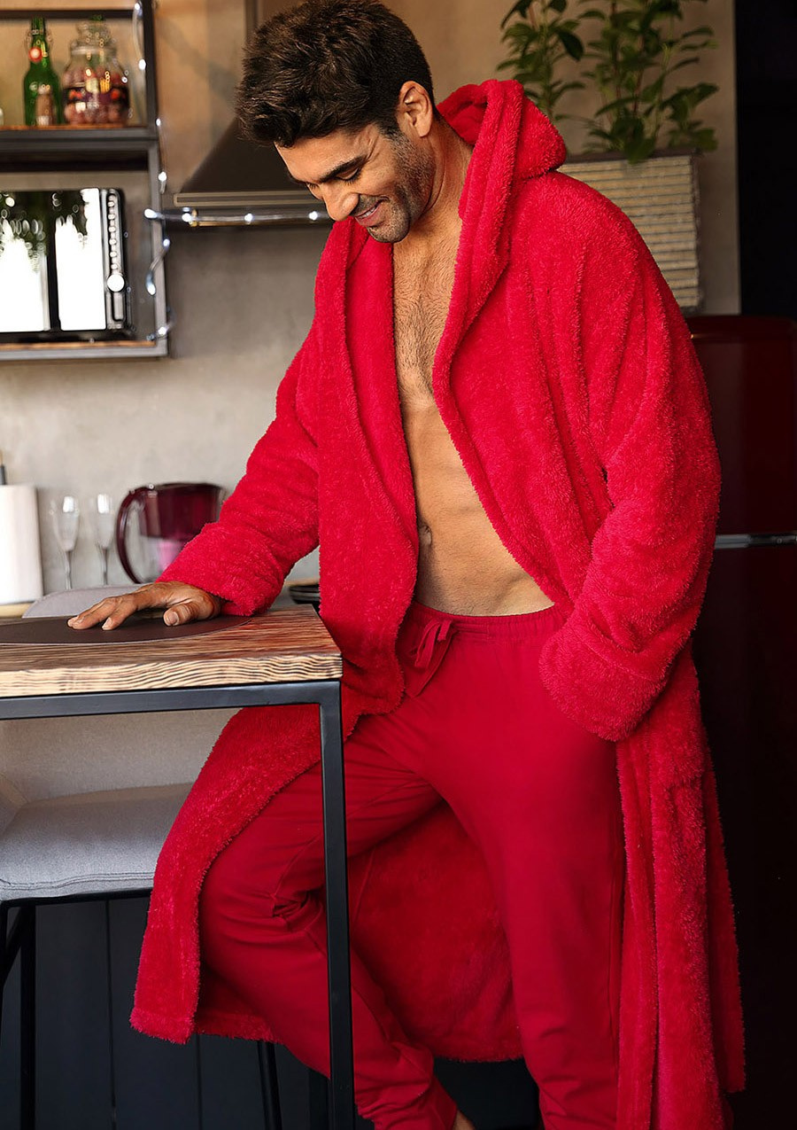 Szlafrok męski Dkaren w soczystym czerwonym kolorze przyciąga wzrok i dodaje energii każdemu dniu. Kaptur nie tylko dodaje stylu, ale również funkcjonalności, oferując dodatkowe ciepło, gdy tego potrzebujesz. Dodatkowo, model został wzbogacony o kieszenie, w których możesz przechować najpotrzebniejsze drobiazgi, co czyni go praktycznym wyborem na co dzień.