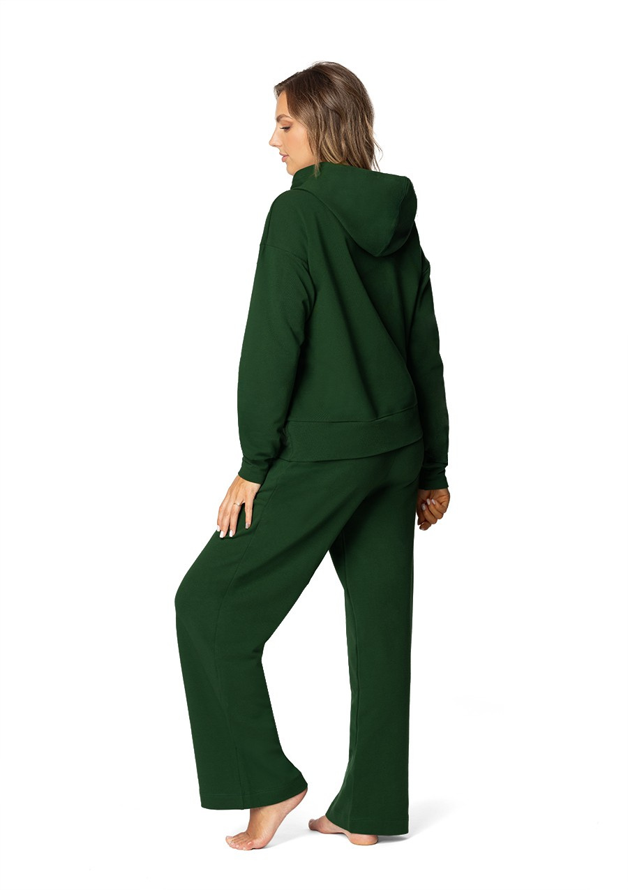 Komplet sportowy bluza z kapturem i "kangurką" oraz szerokie spodnie Dk-k-b8 - zielony bawełna - Dkaren
