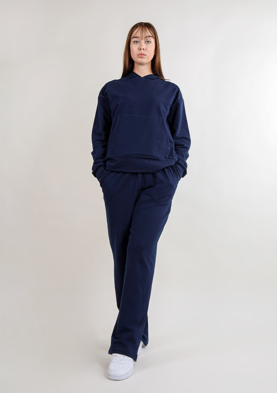 Komplet sportowy bluza z kapturem i "kangurką" oraz szerokie spodnie Dk-k-b8 - granat bawełna - Dkaren