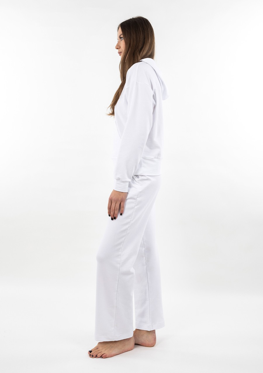 Komplet sportowy bluza z kapturem i "kangurką" oraz szerokie spodnie Dk-k-b8 - biały bawełna - Dkaren