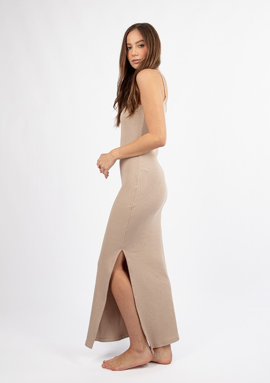 - Prosta sukienka, w kroju maxi od Dkaren ze zmysłowym rozcięciem na prawej nodze. Wysokiej jakości bawełna/prążek.