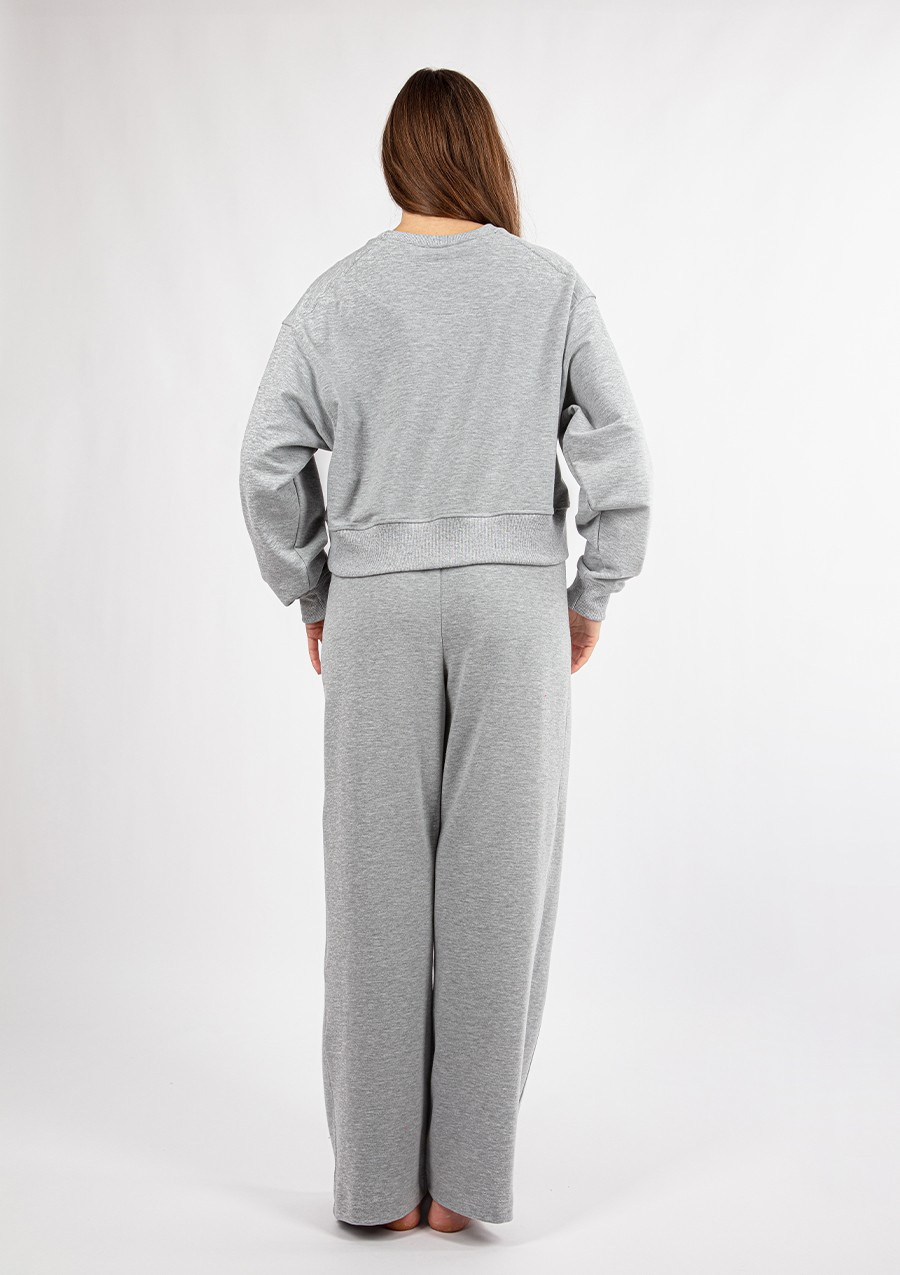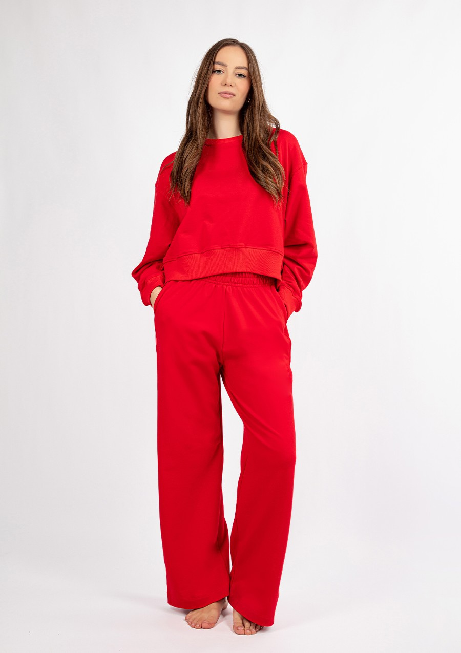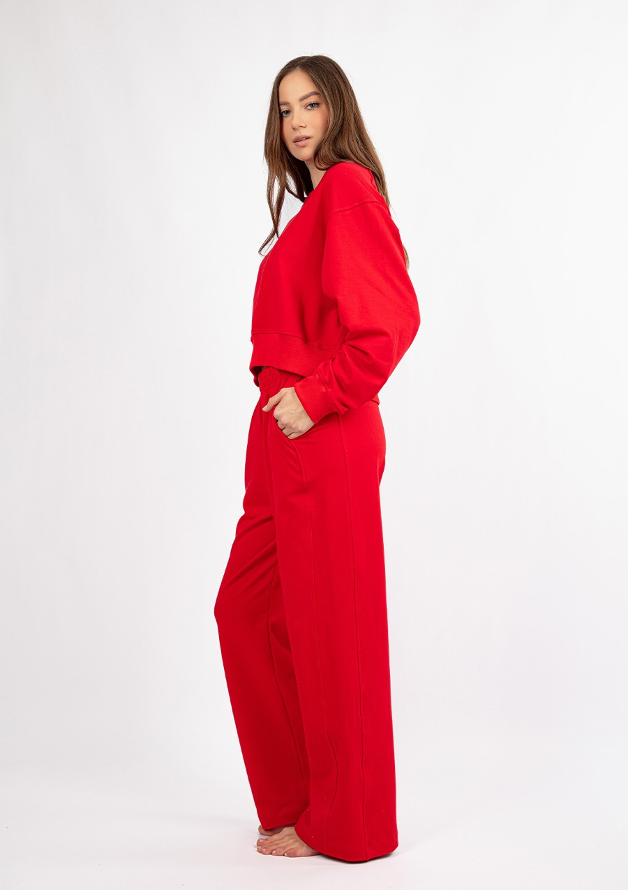 Komplet składa się z długich spodni oraz bluzy z długim rękawem, co sprawia, że idealnie nadaje się na każdą porę roku. 95% bawełny oraz 5% elastanu gwarantuje doskonałe dopasowanie do sylwetki, a także komfort noszenia przez cały dzień. Materiał jest cienki, ale jednocześnie wytrzymały, co zapewnia przyjemność noszenia, nawet w ruchu. Gładka struktura materiału ułatwia pielęgnację i sprawia, że dres wygląda jak nowy nawet po wielu praniach.